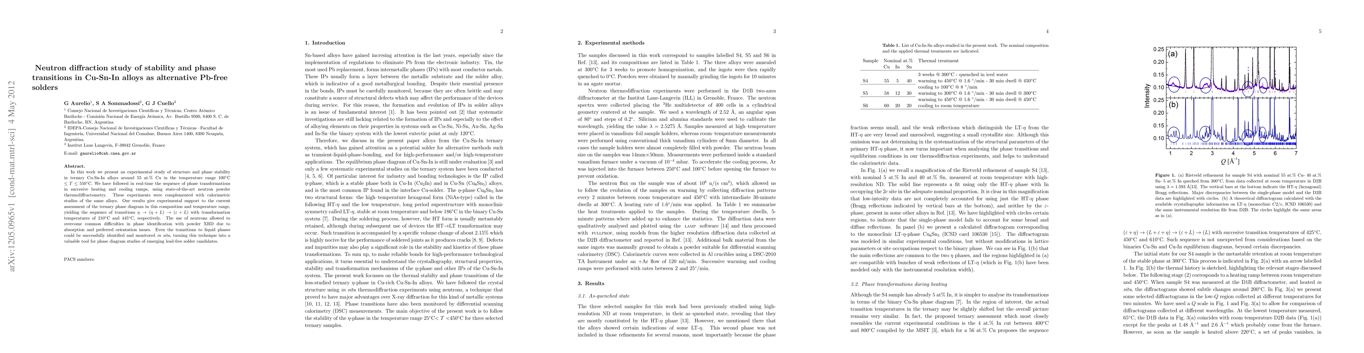 This study uses neutron diffraction to investigate the phase stability and transitions in Cu-Sn-In alloys, identifying the sequence of transformations and transformation temperatures, and demonstrating the technique's effectiveness for studying lead-free solder alternatives.