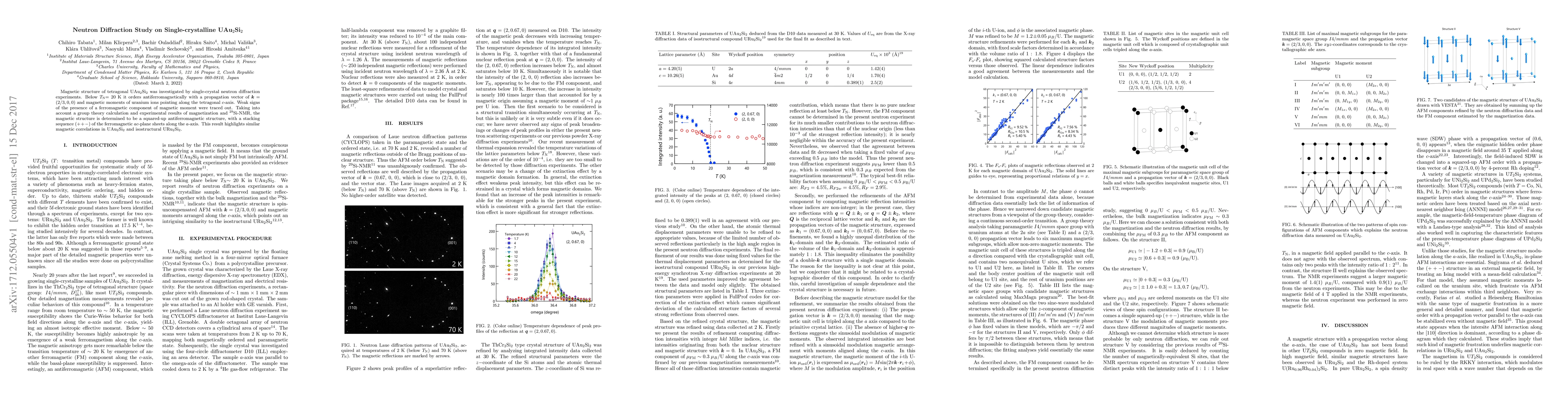 Magnetic structure of tetragonal UAu$_2$Si$_2$ was investigated by single-crystal neutron diffraction experiments. Below $T_{\rm N}$ = 20 K it orders antiferromagnetically with a propagation vector of $k = (2/3, 0, 0)$ and magnetic moments of uranium ions pointing along the tetragonal $c$-axis. Weak signs of the presence of a ferromagnetic component of magnetic moment were traced out.Taking into account a group theory calculation and experimental results of magnetization and $^{29}$Si-NMR, the magnetic structure is determined to be a squared-up antiferromagnetic structure, with a stacking sequence ($+ + -$) of the ferromagnetic $ac$-plane sheets along the $a$-axis. This result highlights similar magnetic correlations in UAu$_2$Si$_2$ and isostructural URu$_2$Si$_2$.