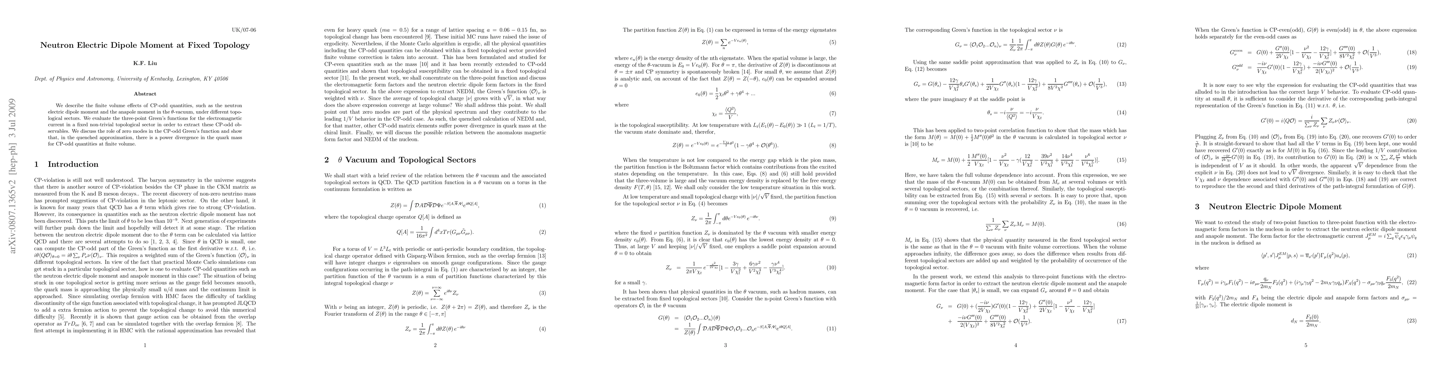 This paper investigates the finite volume effects on CP-odd quantities, specifically the neutron electric dipole moment, within different topological sectors. It evaluates three-point Green's functions for electromagnetic current and highlights the significance of zero modes, revealing a power divergence in quark mass for CP-odd observables in the quenched approximation.