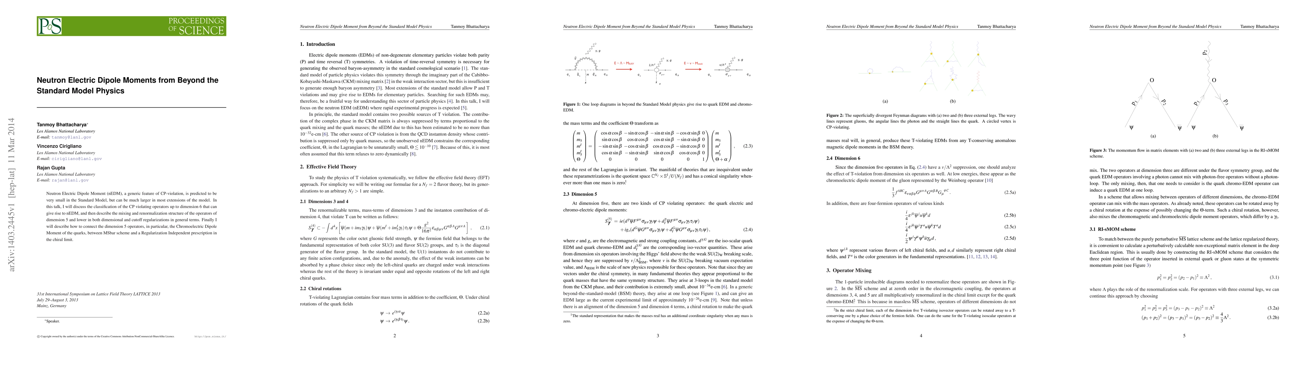 Neutron Electric Dipole Moment (nEDM), a generic feature of CP-violation, is predicted to be very small in the Standard Model, but can be much larger in most extensions of the model. In this talk, I will discuss the classification of the CP violating operators up to dimension 6 that can give rise to nEDM, and then describe the mixing and renormalization structure of the operators of dimension 5 and lower in both dimensional and cutoff regularizations in general terms. Finally I will describe how to connect the dimension 5 operators, in particular, the Chromoelectric Dipole Moment of the quarks, between MSbar scheme and a Regularization Independent prescription in the chiral limit.