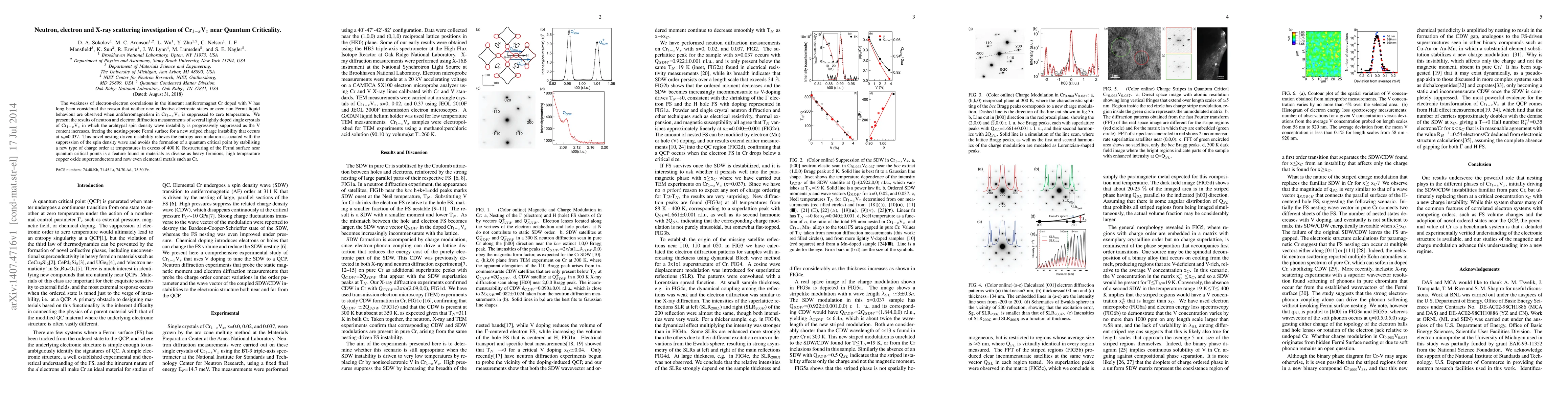 The weakness of electron-electron correlations in the itinerant antiferromagnet Cr doped with V has long been considered the reason that neither new collective electronic states or even non Fermi liquid behaviour are observed when antiferromagnetism in Cr$_{1-x}$V$_{x}$ is suppressed to zero temperature. We present the results of neutron and electron diffraction measurements of several lightly doped single crystals of Cr$_{1-x}$V$_{x}$ in which the archtypal spin density wave instability is progressively suppressed as the V content increases, freeing the nesting-prone Fermi surface for a new striped charge instability that occurs at x$_{c}$=0.037. This novel nesting driven instability relieves the entropy accumulation associated with the suppression of the spin density wave and avoids the formation of a quantum critical point by stabilising a new type of charge order at temperatures in excess of 400 K. Restructuring of the Fermi surface near quantum critical points is a feature found in materials as diverse as heavy fermions, high temperature copper oxide superconductors and now even elemental metals such as Cr.