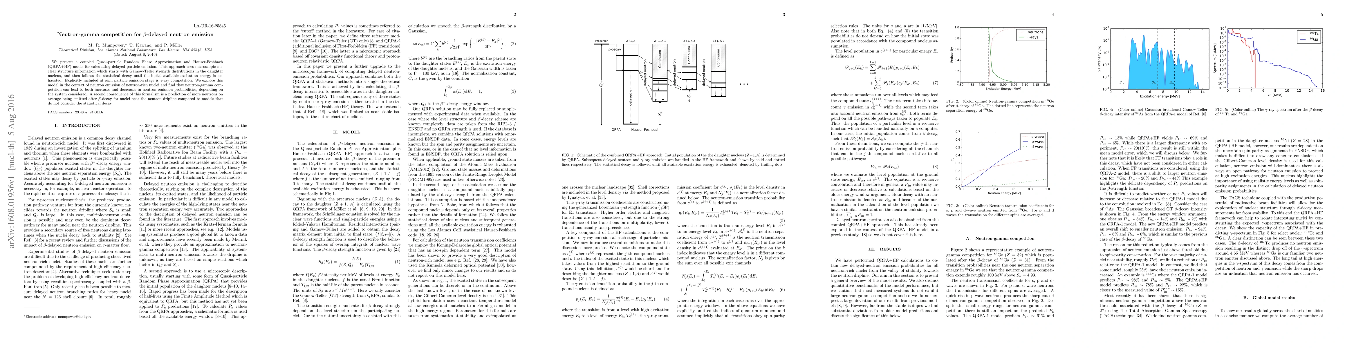 We present a coupled Quasi-particle Random Phase Approximation and Hauser-Feshbach (QRPA+HF) model for calculating delayed particle emission. This approach uses microscopic nuclear structure information which starts with Gamow-Teller strength distributions in the daughter nucleus, and then follows the statistical decay until the initial available excitation energy is exhausted. Explicitly included at each particle emission stage is $\gamma$-ray competition. We explore this model in the context of neutron emission of neutron-rich nuclei and find that neutron-gamma competition can lead to both increases and decreases in neutron emission probabilities, depending on the system considered. A second consequence of this formalism is a prediction of more neutrons on average being emitted after $\beta$-decay for nuclei near the neutron dripline compared to models that do not consider the statistical decay.