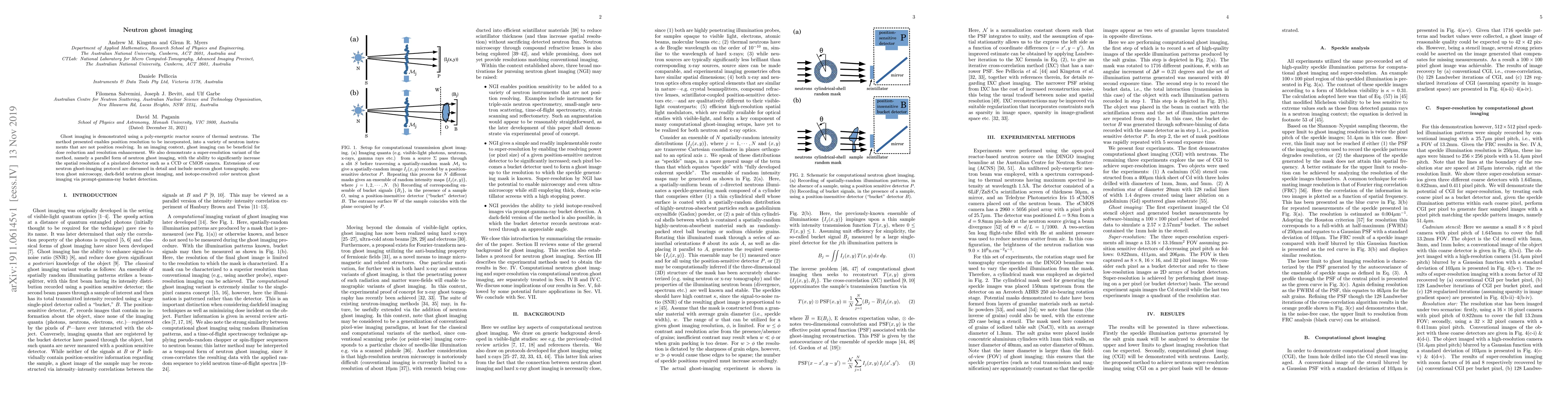 Neutron ghost imaging leverages a poly-energetic thermal neutron source to achieve position resolution in non-position-resolving instruments, enhancing dose reduction and resolution. A parallel form of this method offers significant super-resolution capabilities for pixelated detectors.
