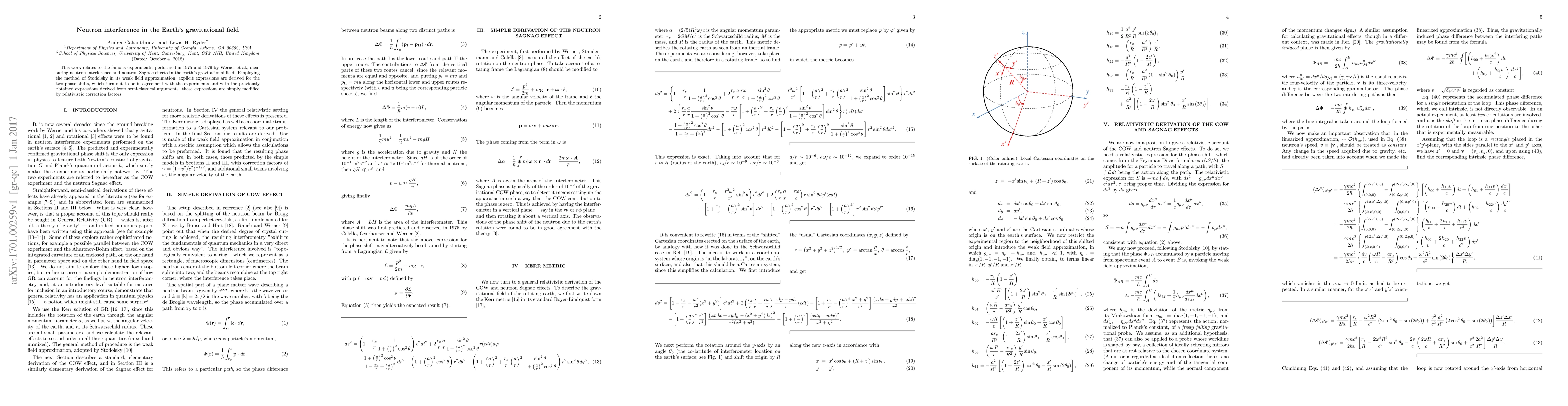 This work relates to the famous experiments, performed in 1975 and 1979 by Werner et al., measuring neutron interference and neutron Sagnac effects in the earth's gravitational field. Employing the method of Stodolsky in its weak field approximation, explicit expressions are derived for the two phase shifts, which turn out to be in agreement with the experiments and with the previously obtained expressions derived from semi-classical arguments: these expressions are simply modified by relativistic correction factors.