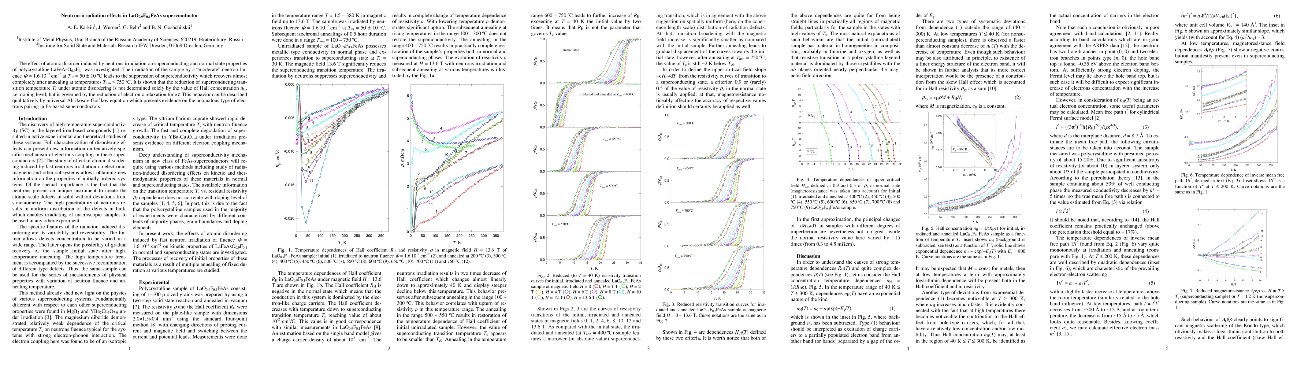 Neutron irradiation suppresses superconductivity in LaFeAsO_0.9F_0.1, but recovers after annealing, revealing the role of electronic relaxation time in determining transition temperature.