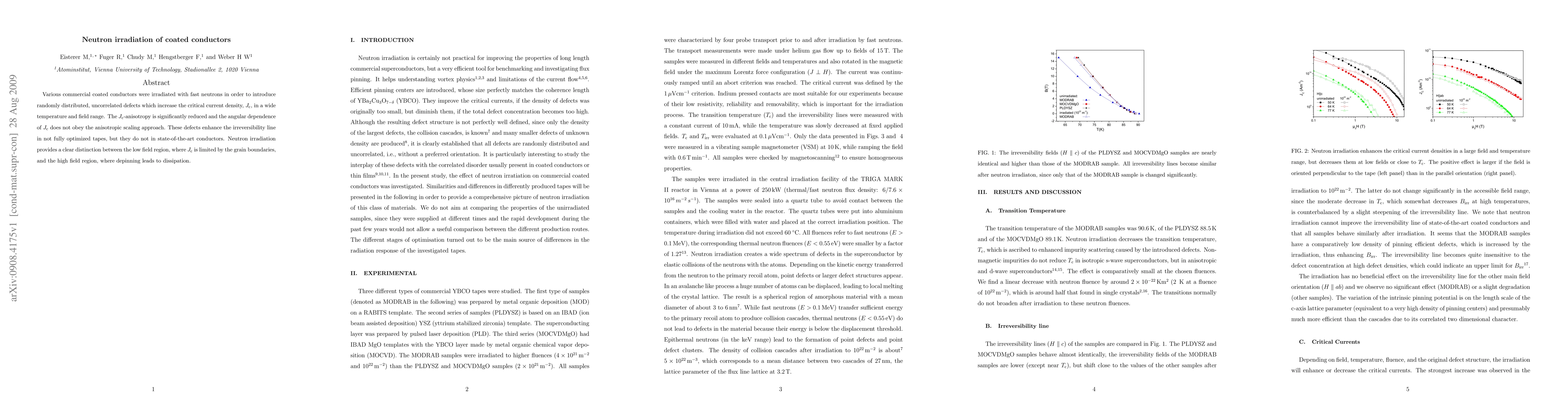 Neutron irradiation introduces defects into commercial coated conductors, increasing critical current density in a wide temperature range but not in state-of-the-art conductors, offering insight into the materials' behavior under high fields.