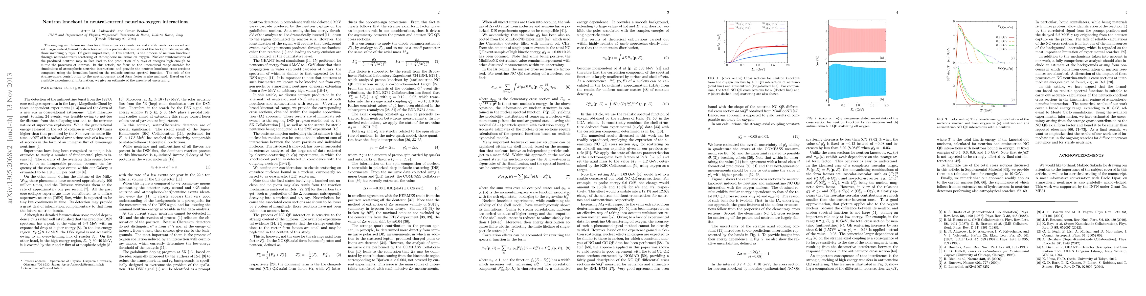 This paper presents neutron-knockout cross sections for neutral-current neutrino-oxygen interactions, crucial for understanding backgrounds in neutrino detectors. It also analyzes the strange-quark contribution to the neutral-current axial form factor and estimates the associated uncertainties.