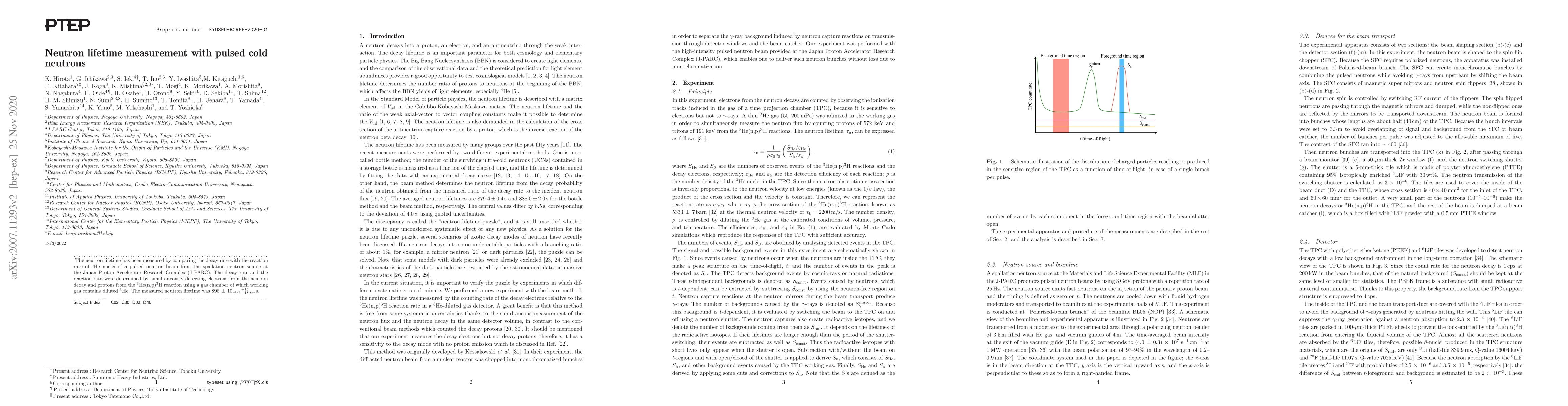 This study measures the neutron lifetime using a pulsed cold neutron beam from J-PARC, determining decay rates via electron detection and reaction rates via proton detection from $^3$He(n,p)$^3$H reactions. The resulting neutron lifetime is $898\,\pm\,10\,_{\rm stat}\,^{+15}_{-18}\,_{\rm sys}\,$s.