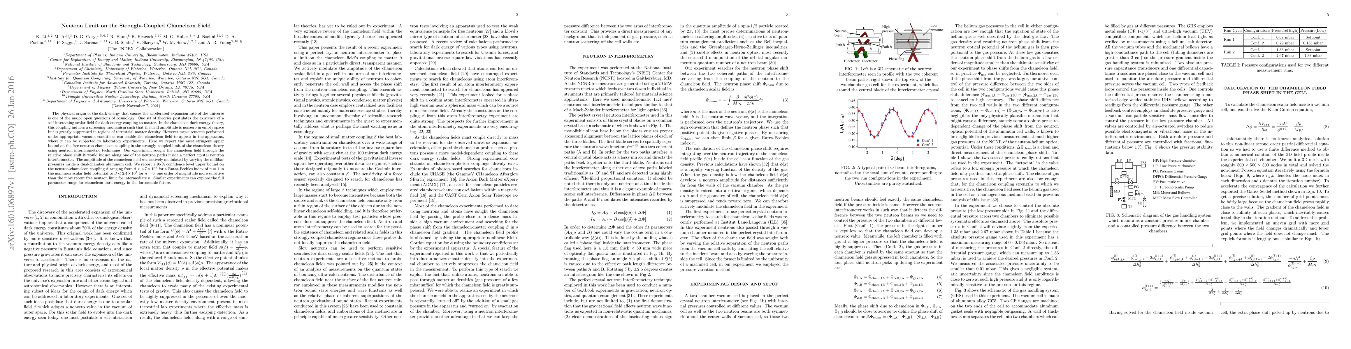 The physical origin of the dark energy that causes the accelerated expansion rate of the universe is one of the major open questions of cosmology. One set of theories postulates the existence of a self-interacting scalar field for dark energy coupling to matter. In the chameleon dark energy theory, this coupling induces a screening mechanism such that the field amplitude is nonzero in empty space but is greatly suppressed in regions of terrestrial matter density. However measurements performed under appropriate vacuum conditions can enable the chameleon field to appear in the apparatus, where it can be subjected to laboratory experiments. Here we report the most stringent upper bound on the free neutron-chameleon coupling in the strongly-coupled limit of the chameleon theory using neutron interferometric techniques. Our experiment sought the chameleon field through the relative phase shift it would induce along one of the neutron paths inside a perfect crystal neutron interferometer. The amplitude of the chameleon field was actively modulated by varying the millibar pressures inside a dual-chamber aluminum cell. We report a 95% confidence level upper bound on the neutron-chameleon coupling $\beta$ ranging from $\beta < 4.7\times 10^6$ for a Ratra-Peebles index of n = 1 in the nonlinear scalar field potential to $\beta < 2.4\times 10^7$ for n = 6, one order of magnitude more sensitive than the most recent free neutron limit for intermediate n. Similar experiments can explore the full parameter range for chameleon dark energy in the foreseeable future.