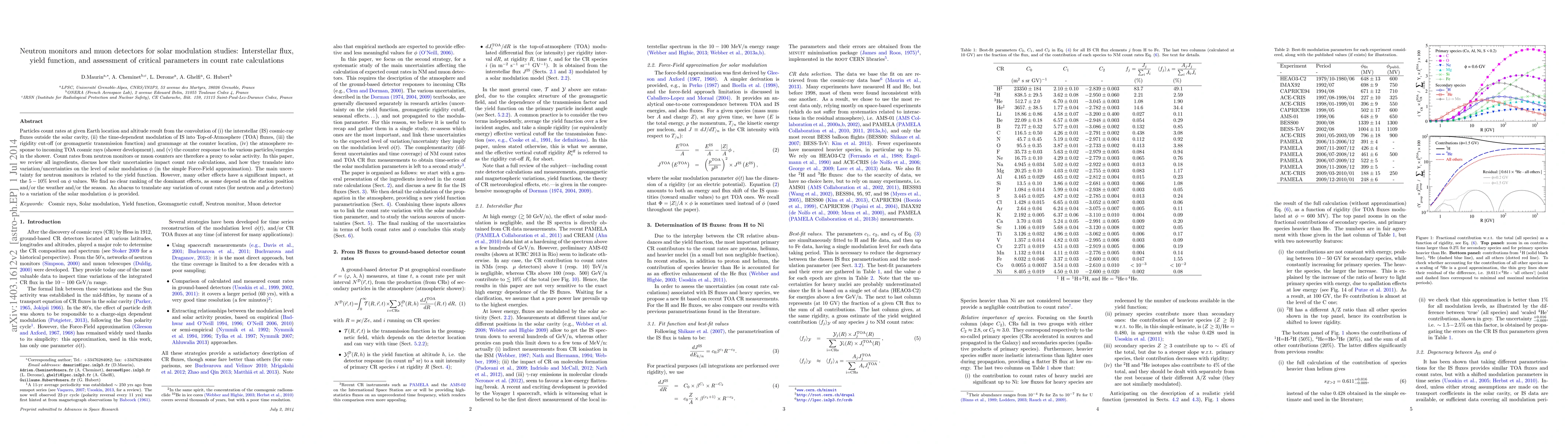 This paper reviews the factors influencing neutron monitor and muon detector count rates, which serve as proxies for solar activity. It discusses the uncertainties in these count rates, particularly the yield function for neutron monitors, and their impact on solar modulation parameters. The study finds no clear ranking of dominant effects due to their dependence on various factors like station position and weather conditions.