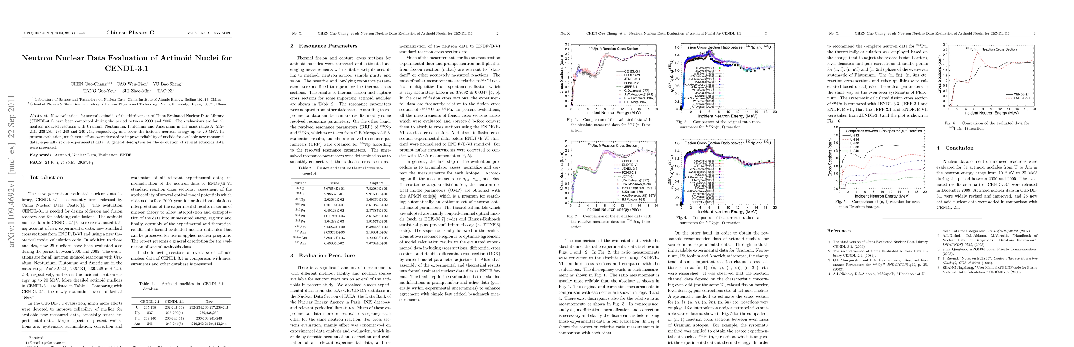 New evaluations for several actinoids of the third version of China Evaluated Nuclear Data Library (CENDL-3.1) have been completed during the period between 2000 and 2005. The evaluations are for all neutron induced reactions with Uranium, Neptunium, Plutonium and Americium in the mass range A=232-241, 236-239, 236-246 and 240-244, respectively, and cover the incident neutron energy up to 20 MeV. In present evaluation, much more efforts were devoted to improve reliability of nuclide for available new measured data, especially scarce experimental data. A general description for the evaluation of several actinoids data were presented.