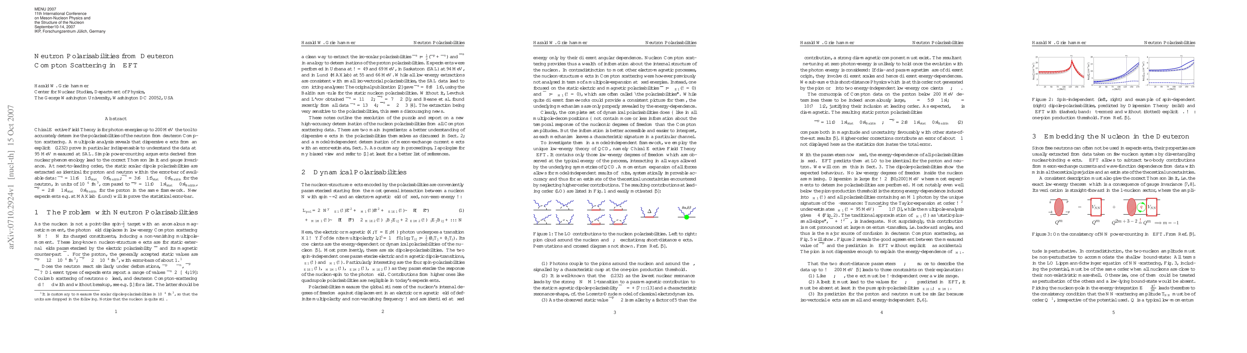 This paper uses Chiral Effective Field Theory to determine neutron polarisabilities from deuteron Compton scattering, finding that dispersive effects from Delta(1232) are crucial. The extracted static scalar dipole polarisabilities for neutron and proton are nearly identical within error margins.