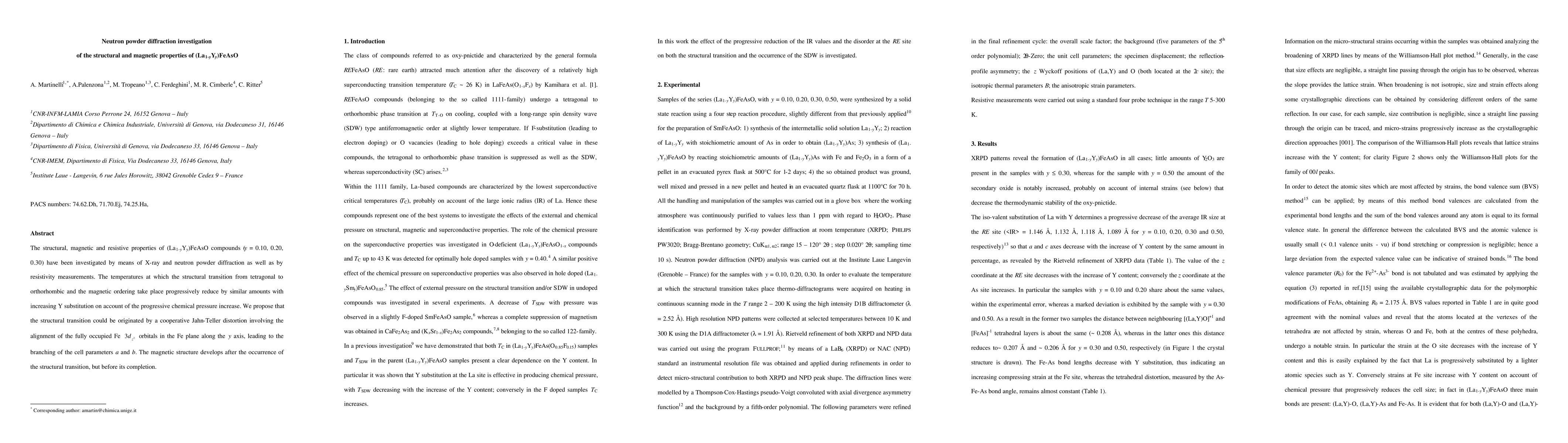 This study investigates the structural and magnetic properties of (La1-yYy)FeAsO compounds using neutron powder diffraction and resistivity measurements. The findings show that Y substitution reduces the temperatures of structural and magnetic transitions due to increased chemical pressure, suggesting a cooperative Jahn-Teller distortion and the magnetic structure developing post-structural transition.