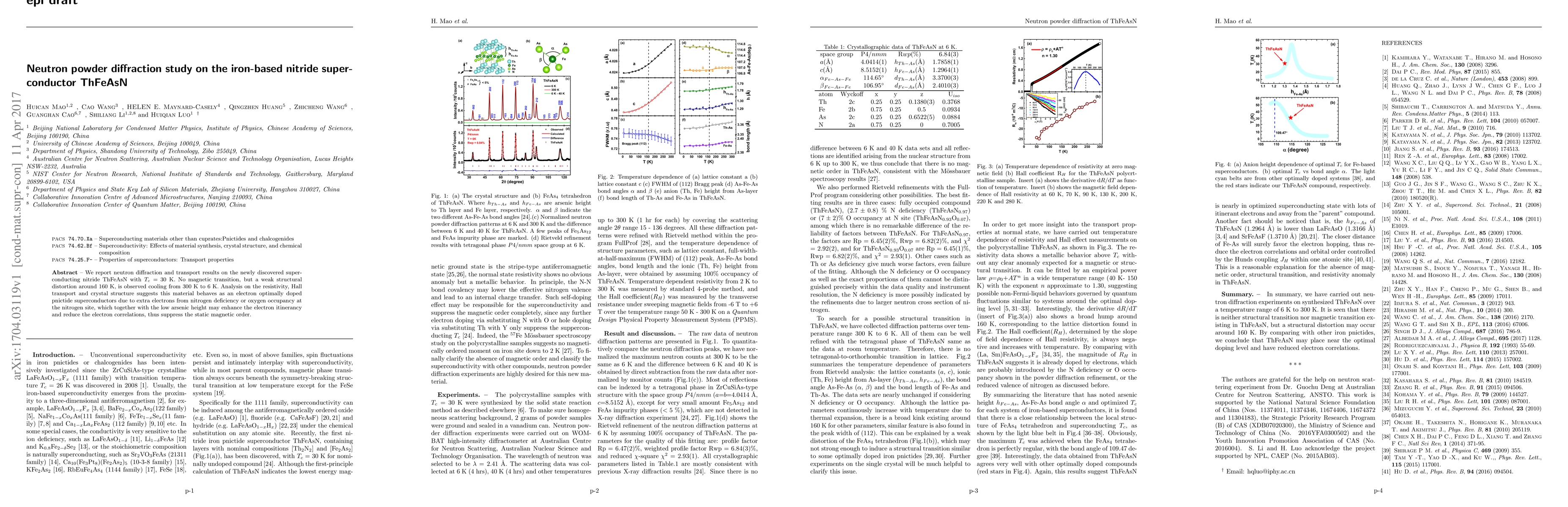 Researchers discovered a new superconducting material, ThFeAsN, with a critical temperature of 30 K. Analysis suggests it behaves like an optimally doped pnictide superconductor due to nitrogen deficiency or oxygen occupancy.