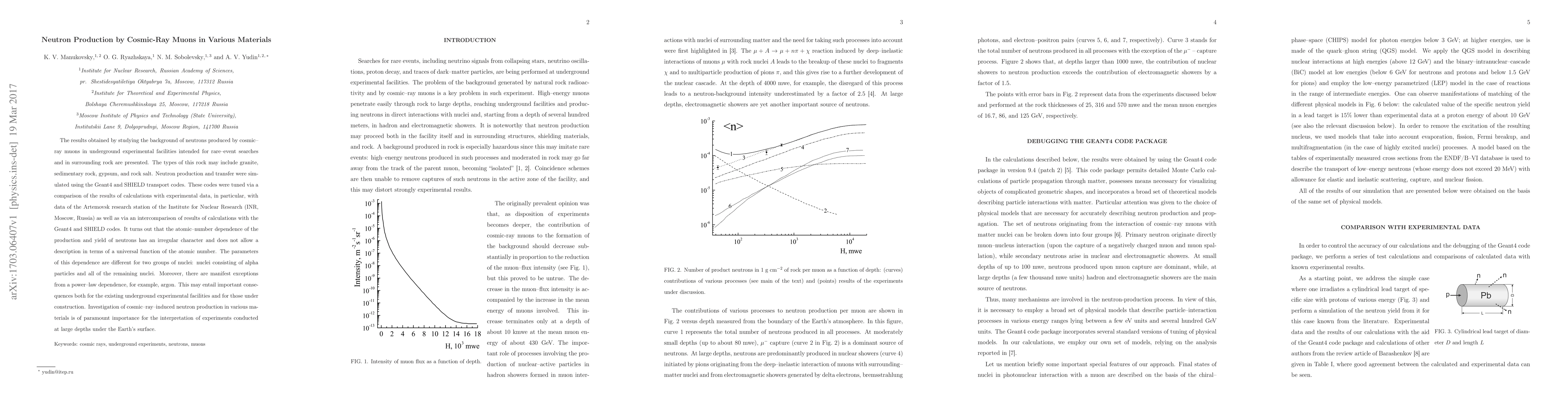 The results obtained by studying the background of neutrons produced by cosmic-ray muons in underground experimental facilities intended for rare-event searches and in surrounding rock are presented. The types of this rock may include granite, sedimentary rock, gypsum, and rock salt. Neutron production and transfer were simulated using the Geant4 and SHIELD transport codes. These codes were tuned via a comparison of the results of calculations with experimental data: in particular, with data of the Artemovsk research station of the Institute for Nuclear Research (INR, Moscow, Russia), as well as via an intercomparison of results of calculations with the Geant4 and SHIELD codes. It turns out that the atomic-number dependence of the production and yield of neutrons has an irregular character and does not allow a description in terms of a universal function of the atomic number. The parameters of this dependence are different for two groups of nuclei-nuclei consisting of alpha particles and all of the remaining nuclei. Moreover, there are manifest exceptions from a power-law dependence, for example, argon. This may entail important consequences both for the existing underground experimental facilities and for those under construction. Investigation of cosmic-ray-induced neutron production in various materials is of paramount importance for the interpretation of experiments conducted at large depths under the Earth's surface.