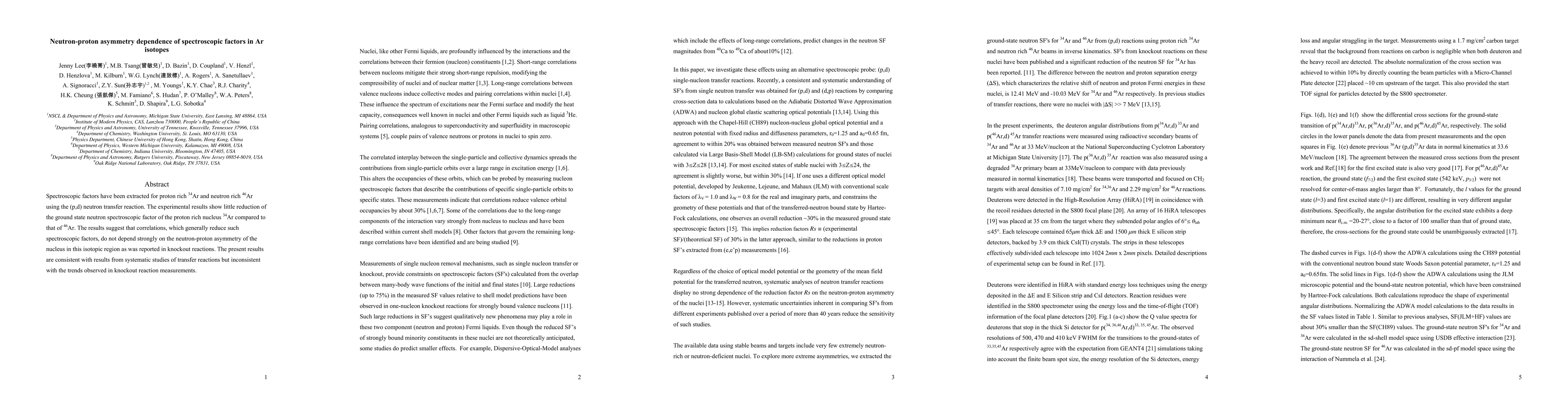 Spectroscopic factors have been extracted for proton rich 34Ar and neutron rich 46Ar using the (p,d) neutron transfer reaction. The experimental results show little reduction of the ground state neutron spectroscopic factor of the proton rich nucleus 34Ar compared to that of 46Ar. The results suggest that correlations, which generally reduce such spectroscopic factors, do not depend strongly on the neutron-proton asymmetry of the nucleus in this isotopic region as was reported in knockout reactions. The present results are consistent with results from systematic studies of transfer reactions but inconsistent with the trends observed in knockout reaction measurements.