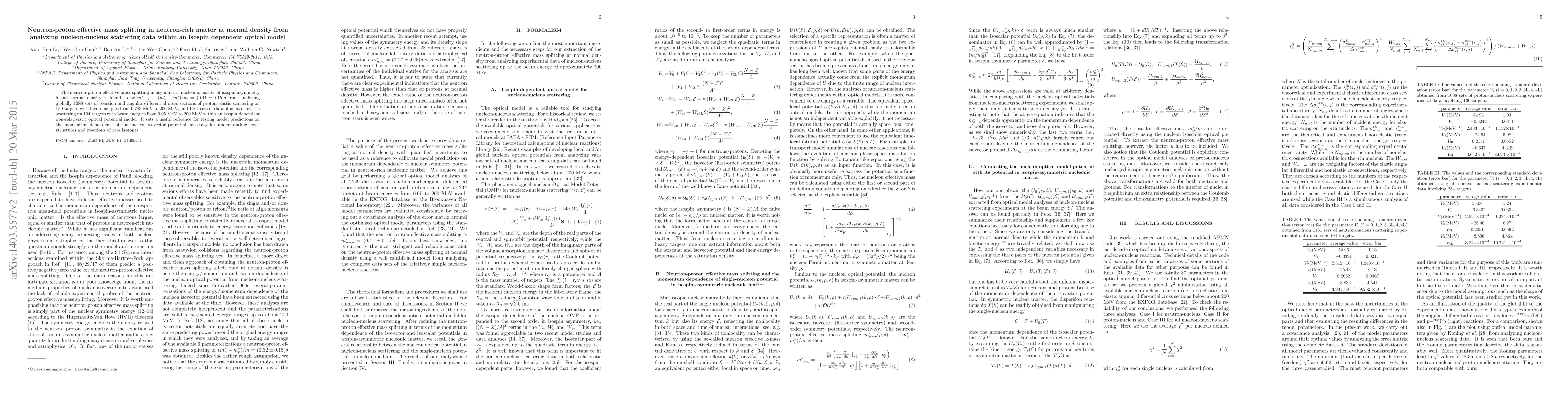 This study determines the neutron-proton effective mass splitting in neutron-rich matter at normal density, finding $m^{*}_{n-p} = (0.41 \pm 0.15)\delta$ from analyzing nucleon-nucleus scattering data within an isospin-dependent optical model. This result provides a reference for evaluating model predictions on the nucleon isovector potential, crucial for understanding rare isotope structures and reactions.