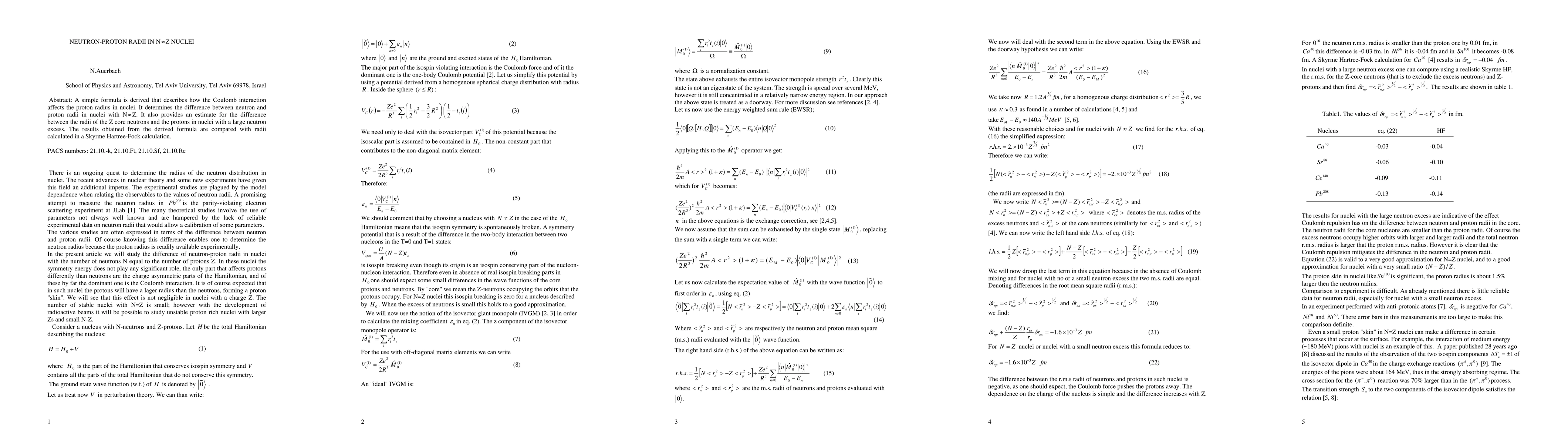 This paper derives a formula to describe the impact of Coulomb interaction on proton radius in N ≈ Z nuclei, determining the neutron-proton radii difference and estimating the radii difference in nuclei with large neutron excess. Results are compared with Skyrme Hartree-Fock calculations.