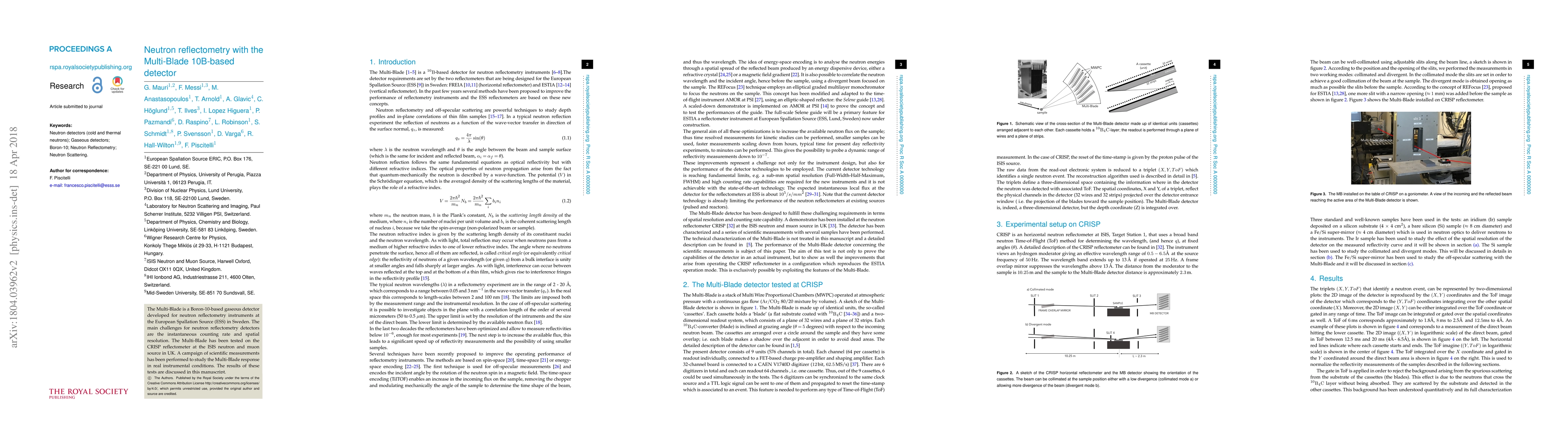 The Multi-Blade is a Boron-10-based gaseous detector developed for neutron reflectometry instruments at the European Spallation Source (ESS) in Sweden. The main challenges for neutron reflectometry detectors are the instantaneous counting rate and spatial resolution. The Multi-Blade has been tested on the CRISP reflectometer at the ISIS neutron and muon source in UK. A campaign of scientific measurements has been performed to study the Multi-Blade response in real instrumental conditions. The results of these tests are discussed in this manuscript.
