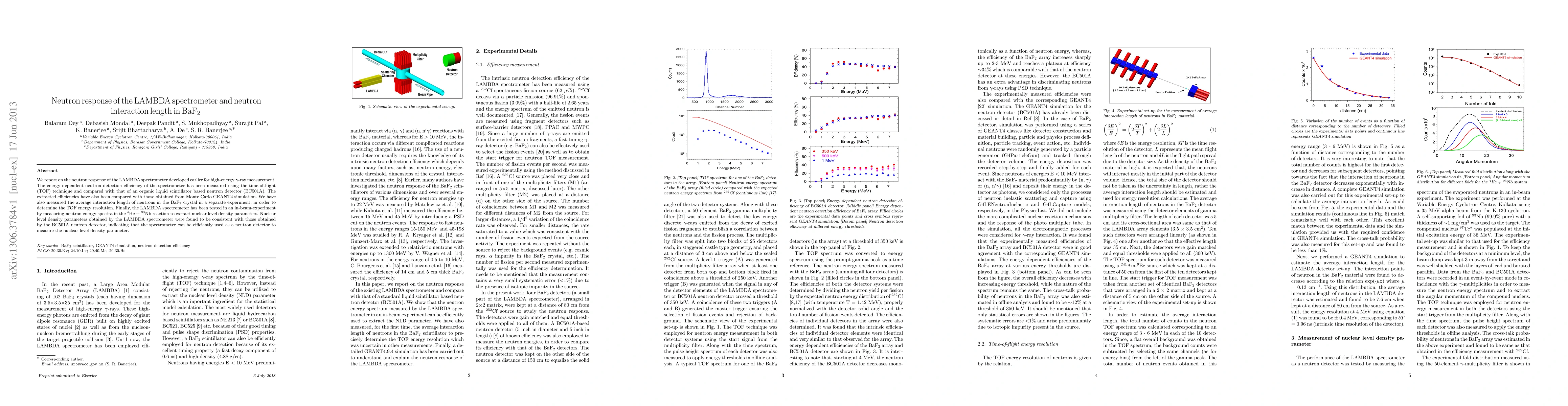 This paper evaluates the neutron response of the LAMBDA spectrometer, comparing its efficiency with an organic liquid scintillator detector and Monte Carlo simulations. It also measures the neutron interaction length in BaF2 to determine time-of-flight energy resolution, demonstrating the spectrometer's effectiveness in neutron detection and nuclear level density parameter extraction.