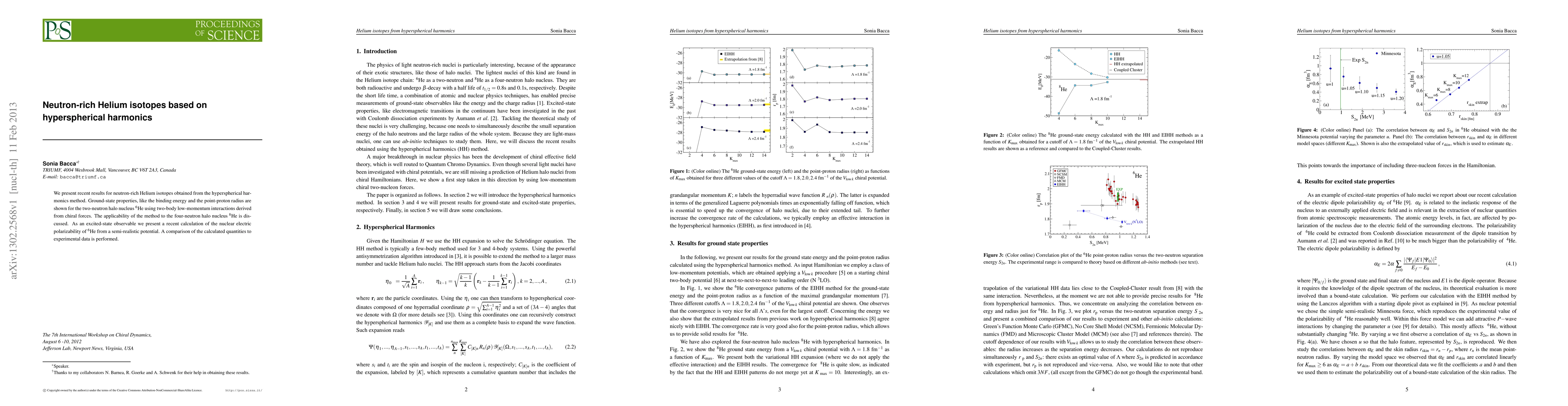 This paper utilizes the hyperspherical harmonics method to study neutron-rich Helium isotopes, specifically calculating ground-state properties for the two-neutron halo nucleus 6He and discussing the method's applicability to 8He. It also presents a calculation of the nuclear electric polarizability of 6He and compares results to experimental data.