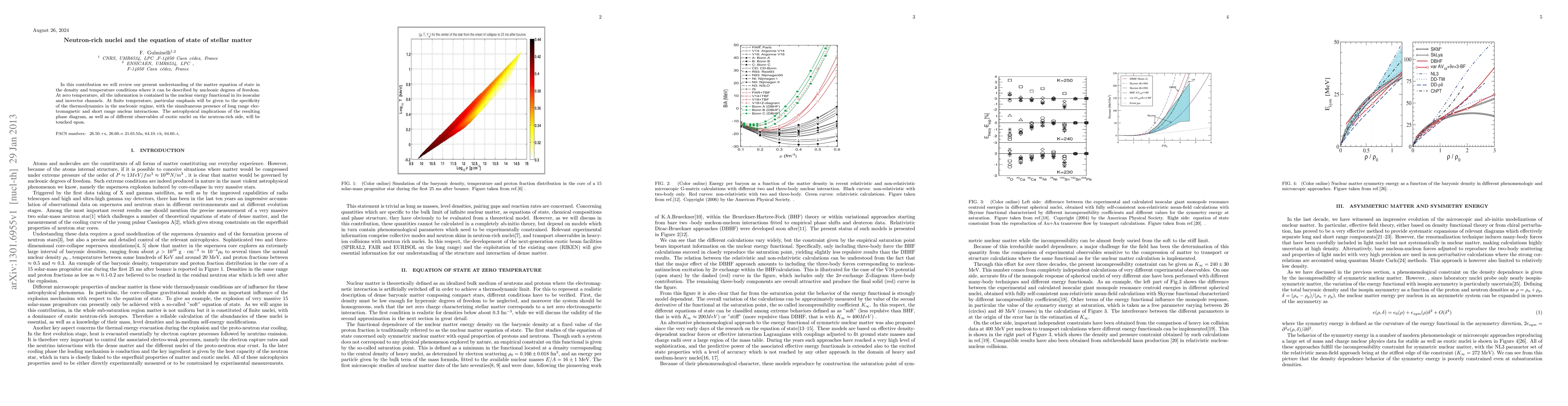 In this contribution we will review our present understanding of the matter equation of state in the density and temperature conditions where it can be described by nucleonic degrees of freedom. At zero temperature, all the information is contained in the nuclear energy functional in its isoscalar and isovector channels. At finite temperature, particular emphasis will be given to the specificity of the thermodynamics in the nucleonic regime, with the simultaneous presence of long range electromagnetic and short range nuclear interactions. The astrophysical implications of the resulting phase diagram, as well as of different observables of exotic nuclei on the neutron-rich side, will be touched upon.