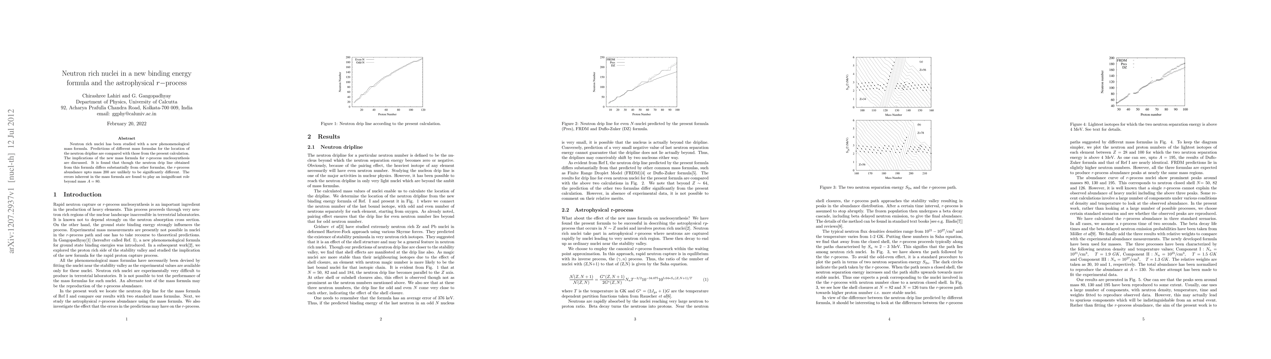 Neutron rich nuclei has been studied with a new phenomenological mass formula. Predictions of different mass formulas for the location of the neutron dripline are compared with those from the present calculation. The implications of the new mass formula for r-process nucleosynthesis are discussed. It is found that though the neutron drip line obtained from this formula differs substantially from other formulas, the r-process abundance upto mass 200 are unlikely to be significantly different. The errors inherent in the mass formula are found to play an insignificant role beyond mass A = 80.