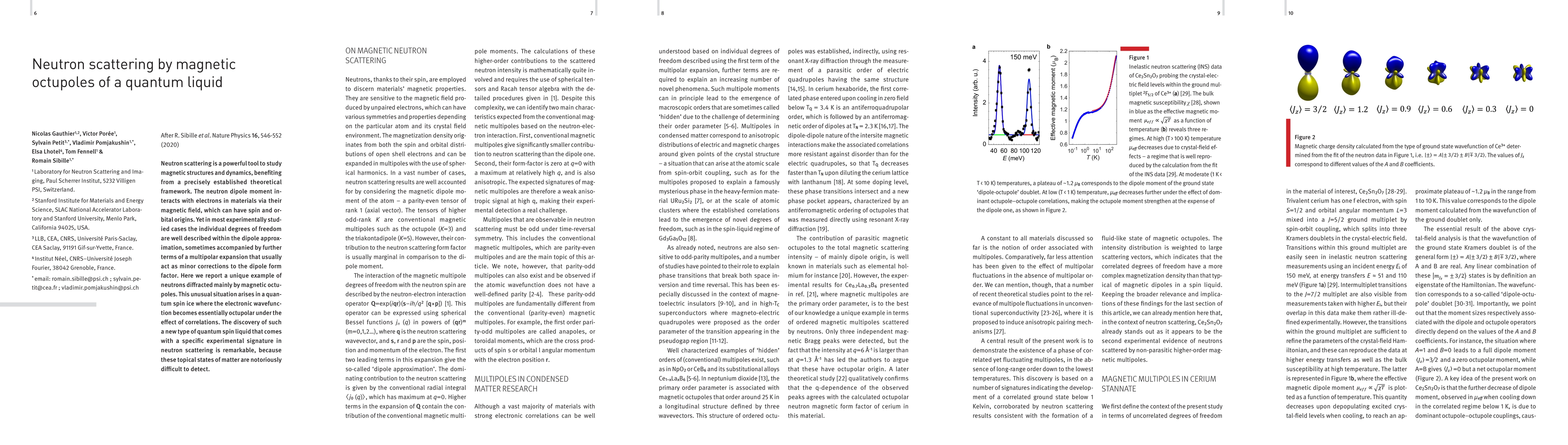 Neutron scattering is a powerful tool to study magnetic structures and dynamics, benefiting from a precisely established theoretical framework. The neutron dipole moment interacts with electrons in materials via their magnetic field, which can have spin and orbital origins. Yet in most experimentally studied cases the individual degrees of freedom are well described within the dipole approximation, sometimes accompanied by further terms of a multipolar expansion that usually act as minor corrections to the dipole form factor. Here we report a unique example of neutrons diffracted mainly by magnetic octupoles. This unusual situation arises in a quantum spin ice where the electronic wavefunction becomes essentially octupolar under the effect of correlations. The discovery of such a new type of quantum spin liquid that comes with a specific experimental signature in neutron scattering is remarkable, because these topical states of matter are notoriously difficult to detect.