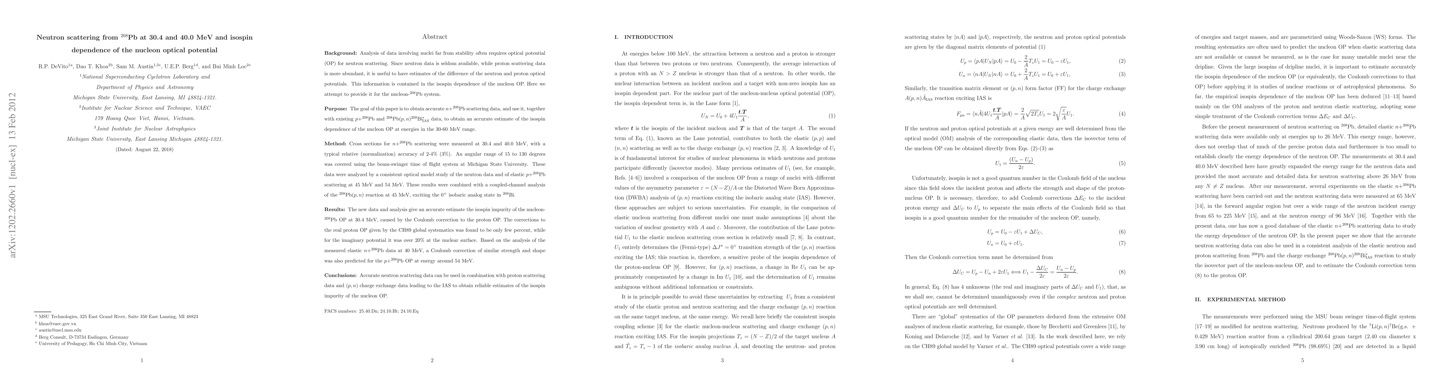 This paper measures neutron scattering cross sections from 208Pb at 30.4 and 40.0 MeV to determine the isospin dependence of the nucleon optical potential. The analysis, combined with proton scattering and (p,n) reaction data, provides an accurate estimate of the isospin impurity in the nucleon-208Pb optical potential, revealing significant differences in the Coulomb correction for the real and imaginary parts.