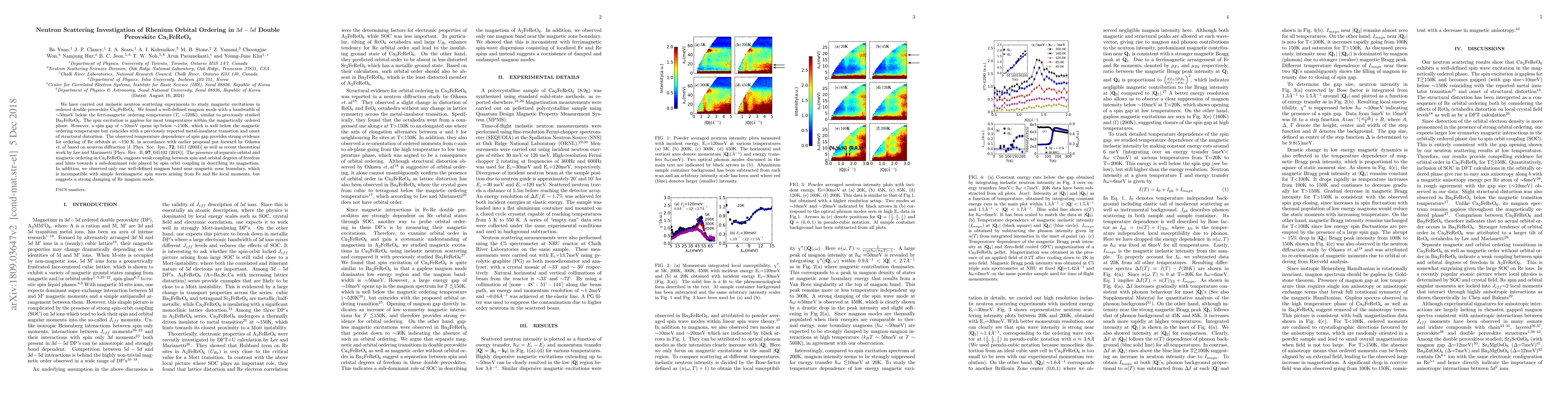 This paper reports on inelastic neutron scattering studies revealing magnetic excitations in the double perovskite Ca$_2$FeReO$_6$, revealing a well-defined magnon mode and a spin gap opening below 150K, indicative of Re orbital ordering. The findings suggest weak coupling between spin and orbital dynamics and imply a sub-dominant role of spin-orbit coupling in the material's magnetism.