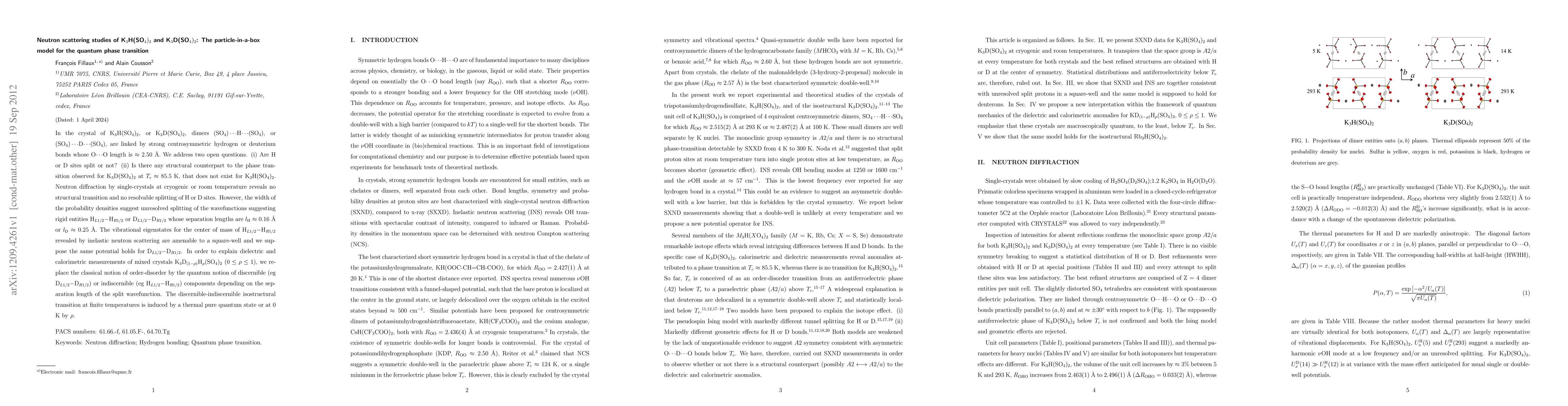 Researchers studied two compounds, K3H(SO4)2 and K3D(SO4)2, using neutron scattering to understand a quantum phase transition. They found evidence of unresolved splitting of hydrogen and deuterium sites, suggesting the existence of distinct quantum states.