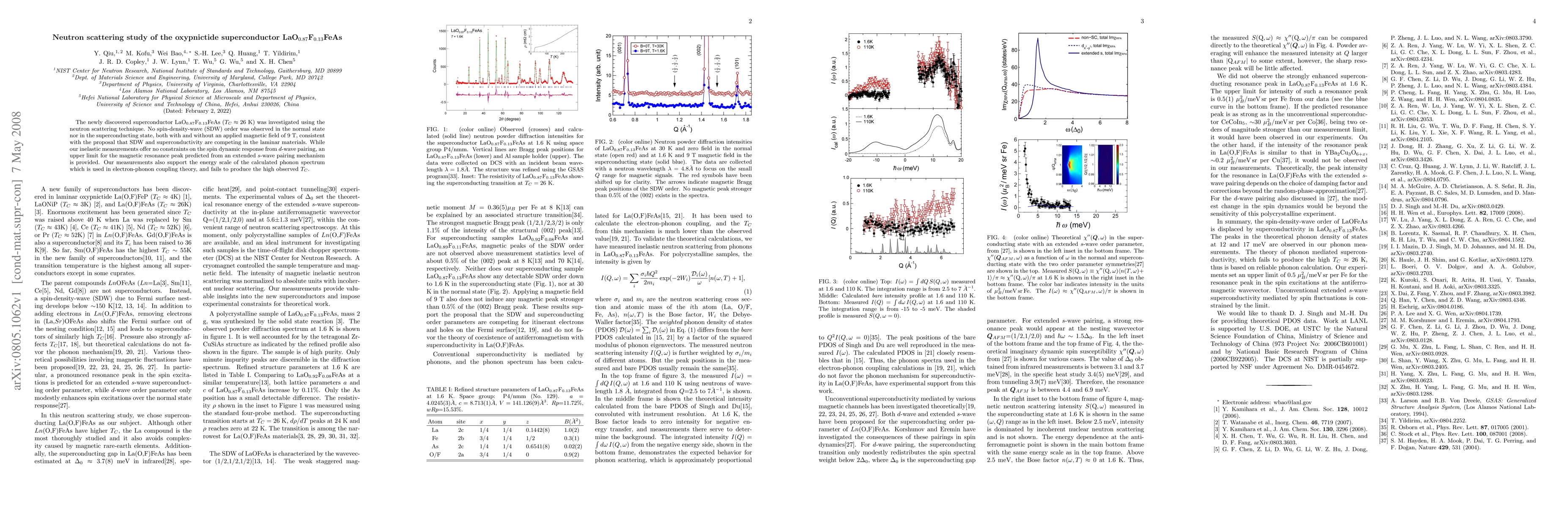 Researchers used neutron scattering to study La(O,F)FeAs, a newly discovered superconductor with a high critical temperature of 26K. Their findings suggest that spin-density-wave order is not present in either the normal or superconducting state, consistent with the idea that SDW and superconductivity compete in this material.