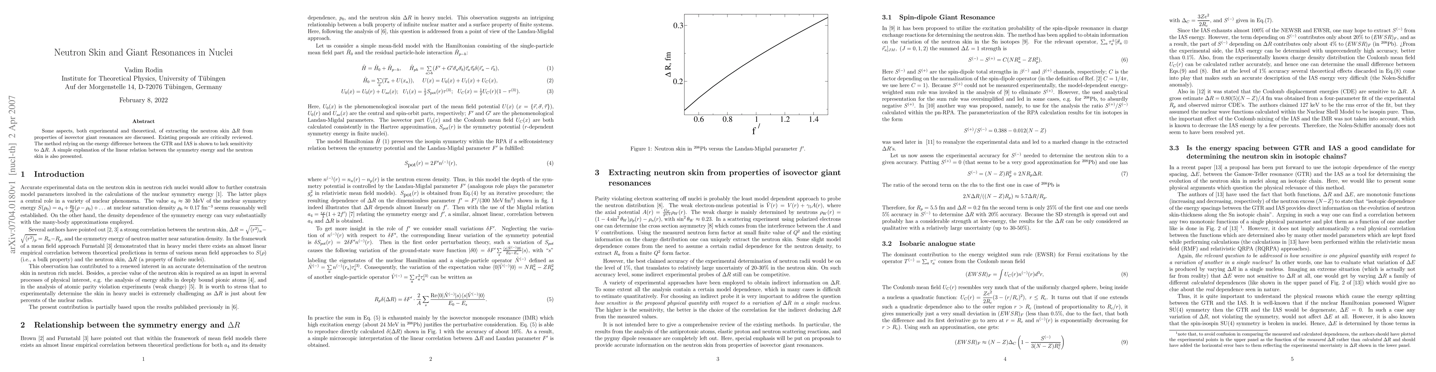 This paper critically reviews experimental and theoretical approaches to determining neutron skin thickness $\Delta R$ from isovector giant resonance properties, finding that the energy difference method lacks sensitivity. It also presents a straightforward explanation of the linear relationship between symmetry energy and neutron skin.
