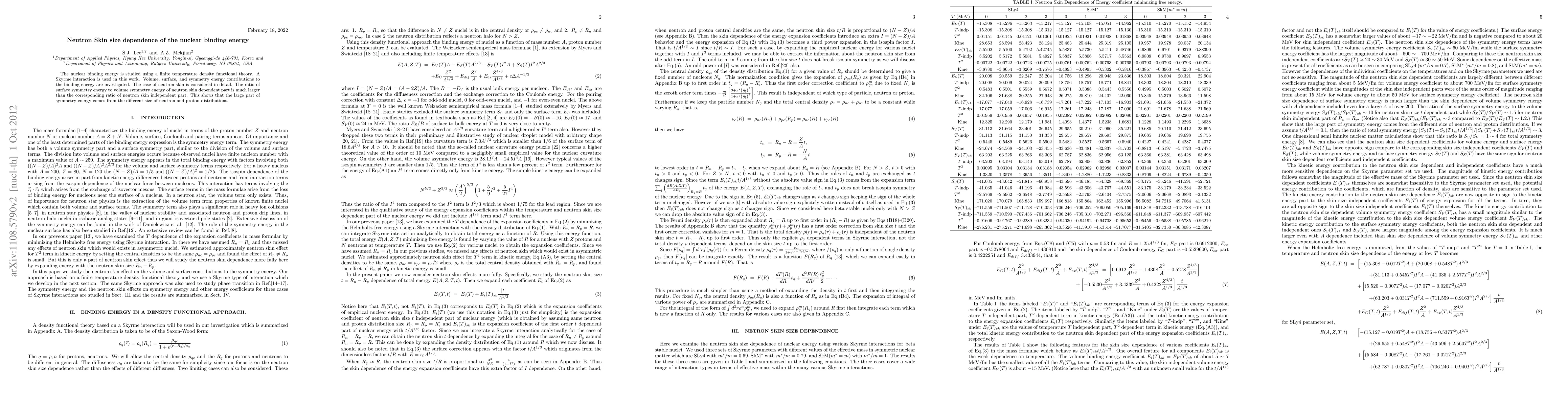The nuclear binding energy is studied using a finite temperature density functional theory. A Skyrme interaction is used in this work. Volume, surface, and symmetry energy contributions to the binding energy are investigated. The case of neutron skin is considered in detail. The neutron skin modifies the mass $A$ dependence of various terms and $I$ dependence of the skin thickness is proportional to $I$ for the case of same central density.