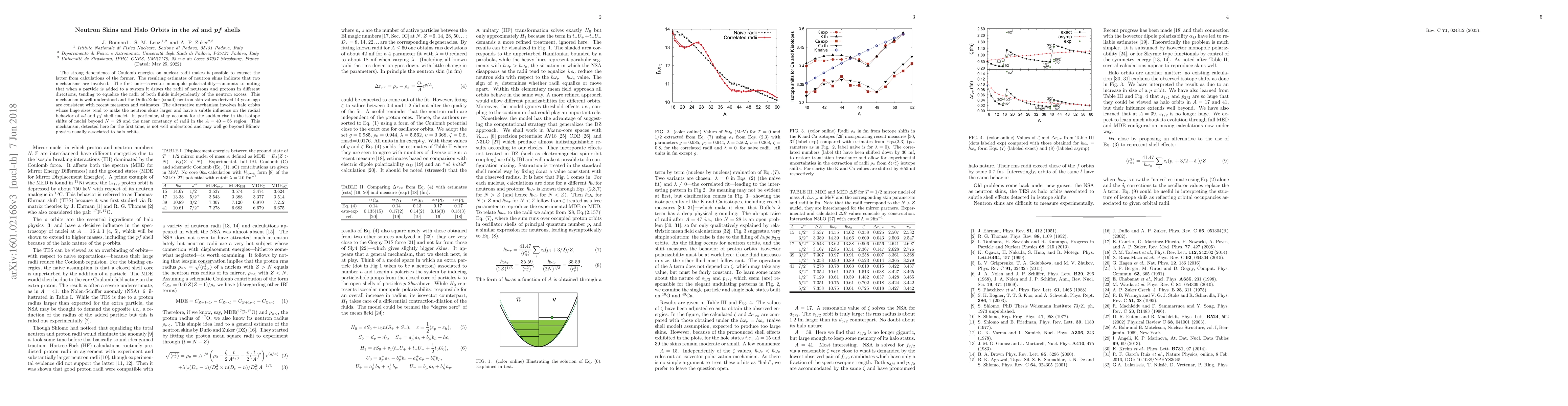 The strong dependence of Coulomb energies on nuclear radii makes it possible to extract the latter from calculations of the former. The resulting estimates of neutron skins indicate that two mechanisms are involved. The first one---isovector monopole polarizability---amounts to noting that when a particle is added to a system it drives the radii of neutrons and protons in different directions, tending to equalize the radii of both fluids independently of the neutron excess. This mechanism is well understood and the Duflo-Zuker (small) neutron skin values derived 14 years ago are consistent with recent measures and estimates. The alternative mechanism involves halo orbits whose huge sizes tend to make the neutron skins larger and have a subtle influence on the radial behavior of $sd$ and $pf$ shell nuclei. In particular, they account for the sudden rise in the isotope shifts of nuclei beyond $N=28$ and the near constancy of radii in the $A=40-56$ region. This mechanism, detected here for the first time, is not well understood and may well go beyond Efimov physics usually associated to halo orbits.