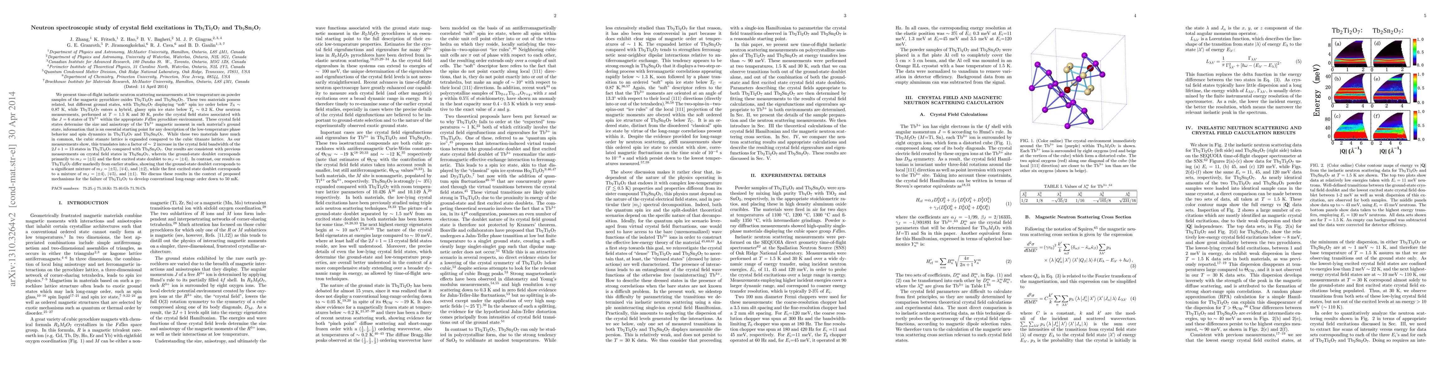 We present time-of-flight inelastic neutron scattering measurements at low temperature on powder samples of the magnetic pyrochlore oxides Tb2Ti2O7 and Tb2Sn2O7. These two materials possess related, but different ground states, with Tb2Sn2O7 displaying "soft" spin ice order below Tn~0.87 K, while Tb2Ti2O7 enters a hybrid, glassy spin ice state below Tg~0.2 K. Our neutron measurements, performed at T=1.5 K and 30 K, probe the crystal field states associated with the J=6 states of Tb3+ within the appropriate Fd\bar{3}m pyrochlore environment. These crystal field states determine the size and anisotropy of the Tb3+ magnetic moment in each material's ground state, information that is an essential starting point for any description of the low-temperature phase behavior and spin dynamics in Tb2Ti2O7 and Tb2Sn2O7. While these two materials have much in common, the cubic stanate lattice is expanded compared to the cubic titanate lattice. As our measurements show, this translates into a factor of ~2 increase in the crystal field bandwidth of the 2J+1=13 states in Tb2Ti2O7 compared with Tb2Sn2O7. Our results are consistent with previous measurements on crystal field states in Tb2Sn2O7, wherein the ground state doublet corresponds primarily to m_J=|\pm 5> and the first excited state doublet to mJ=|\pm 4>. In contrast, our results on Tb2Ti2O7 differ markedly from earlier studies, showing that the ground state doublet corresponds to a significant mixture of mJ=|\pm 5>, |\mp 4>, and |\pm 2>, while the first excited state doublet corresponds to a mixture of mJ=|\pm 4>, |\mp 5>, and |\pm 1>. We discuss these results in the context of proposed mechanisms for the failure of Tb2Ti2O7 to develop conventional long-range order down to 50 mK.