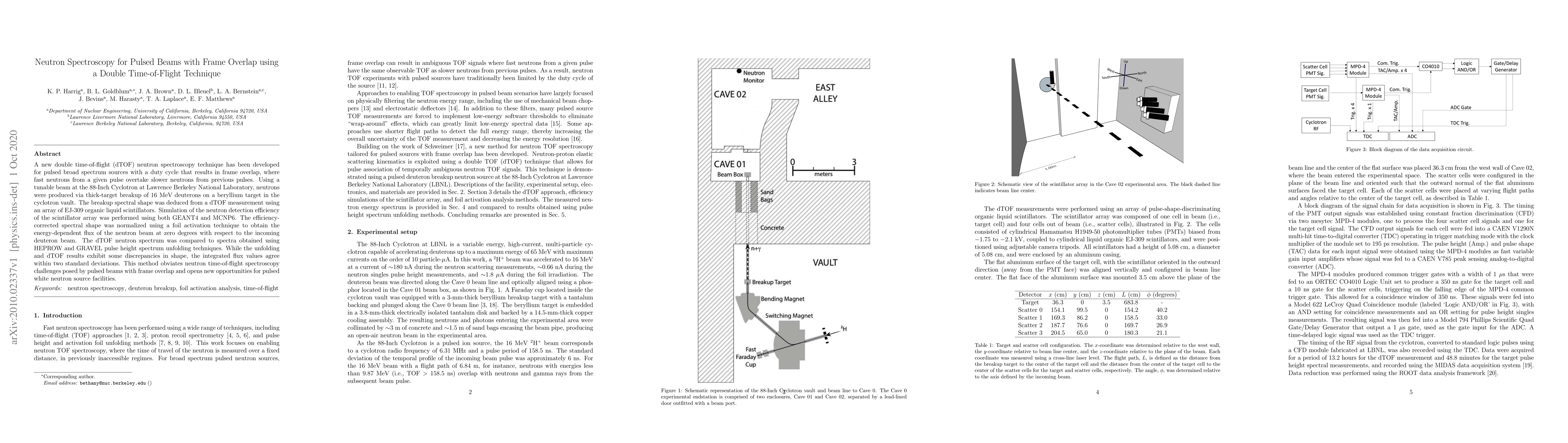 This paper introduces a novel double time-of-flight (dTOF) neutron spectroscopy technique for analyzing pulsed beams with frame overlap, validated using a tunable beam at the Lawrence Berkeley National Laboratory. The method successfully deduces neutron spectral shapes and compares favorably with existing unfolding techniques.