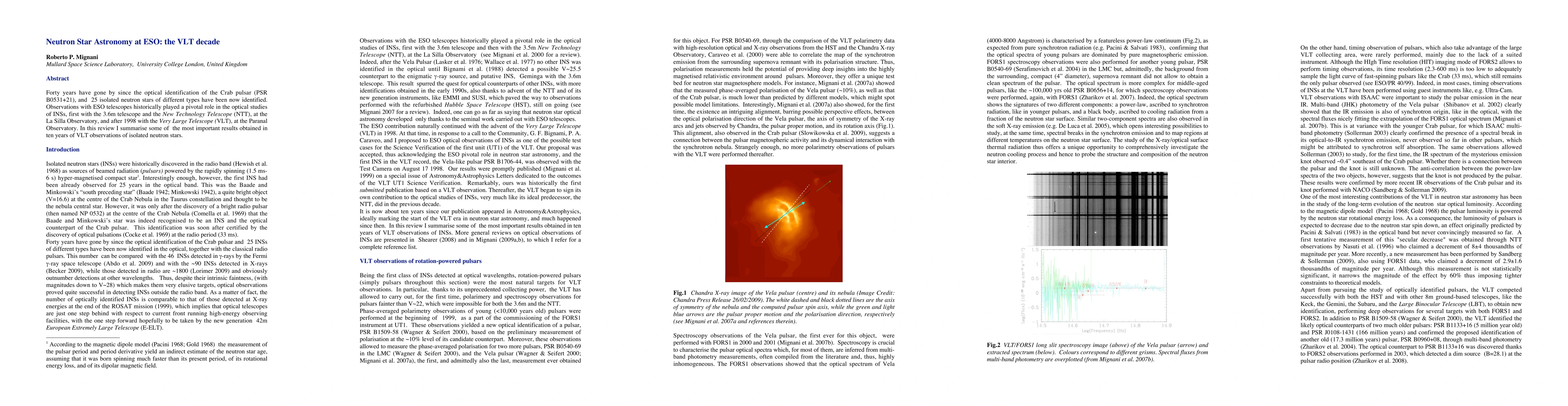 This paper reviews the significant contributions of the European Southern Observatory's Very Large Telescope (VLT) to the study of isolated neutron stars over the past decade, highlighting key discoveries made since the first optical identification of the Crab pulsar. The VLT has played a crucial role in advancing our understanding of these stellar remnants.