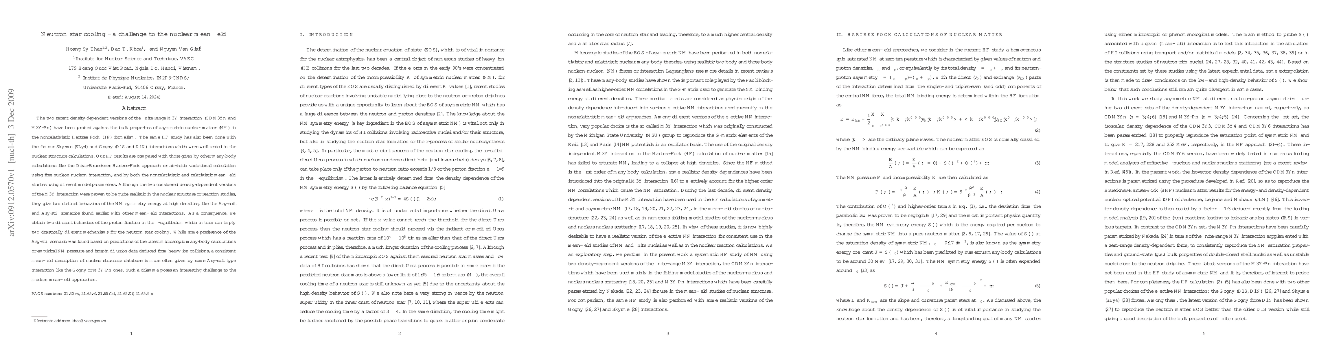 This paper investigates the neutron star cooling mechanisms using various nuclear mean field interactions, finding that the density-dependent versions of the M3Y interaction lead to different high-density behaviors of nuclear matter symmetry energy, resulting in distinct cooling mechanisms for neutron stars. The study highlights a challenge for modern mean-field approaches in consistently describing both nuclear structure and neutron star cooling.