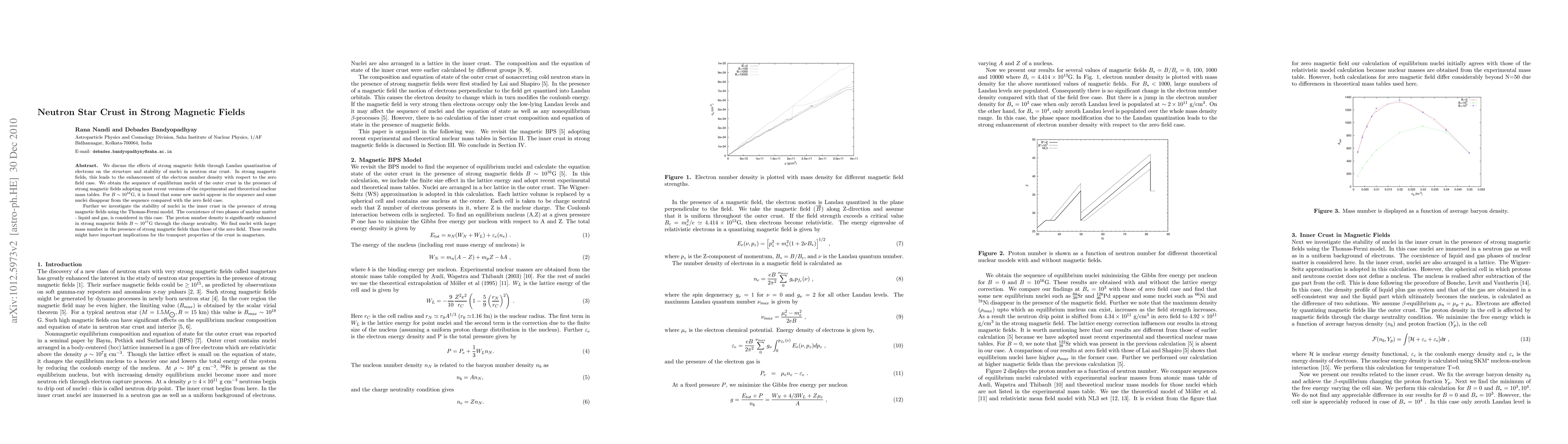 This paper explores how strong magnetic fields affect neutron star crust structure and stability, showing that Landau quantization enhances electron density and alters nuclear sequences in the outer crust. It also finds that strong fields lead to larger nuclei in the inner crust and significant proton density enhancement, potentially influencing magnetar crust transport properties.