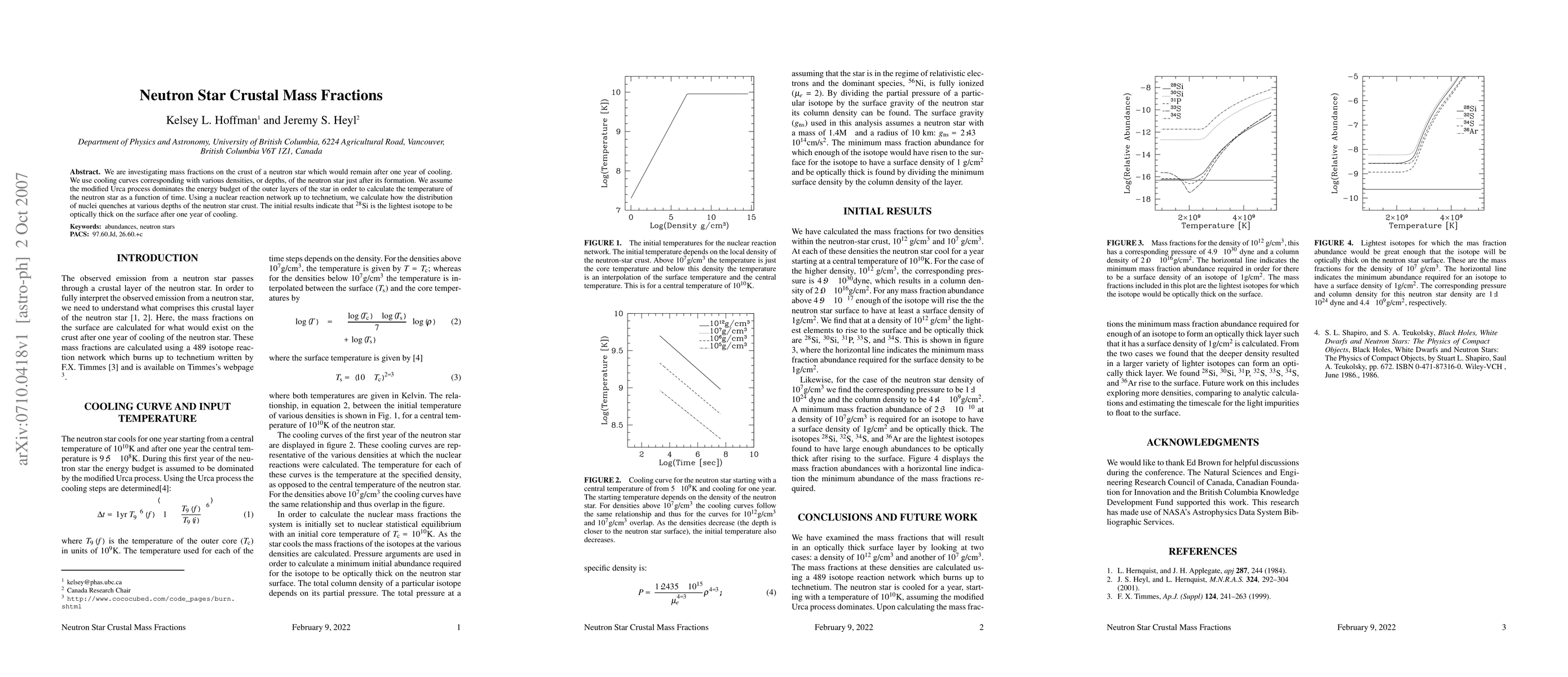 Researchers studied how a neutron star cools over time to determine which isotope is optically thick on its surface after one year. They found that silicon-28 is the lightest isotope to reach this state.