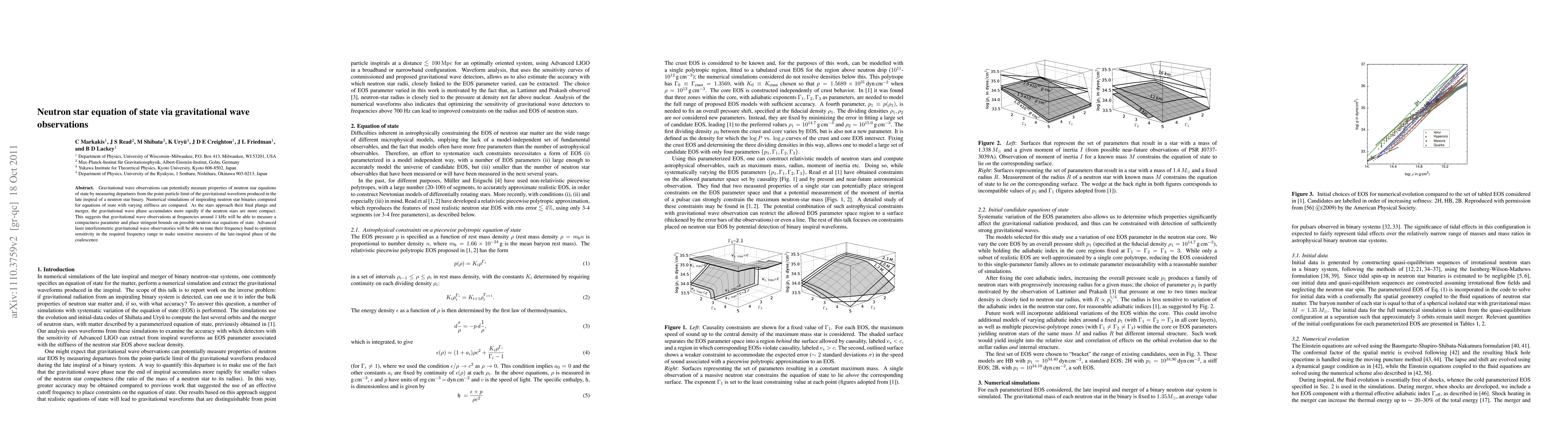 This paper explores how gravitational wave observations can determine neutron star equations of state by analyzing the late-inspiral phase of neutron star binaries. Advanced gravitational wave detectors will be able to measure the compactness parameter of neutron stars, thereby providing stringent constraints on their internal equations of state.