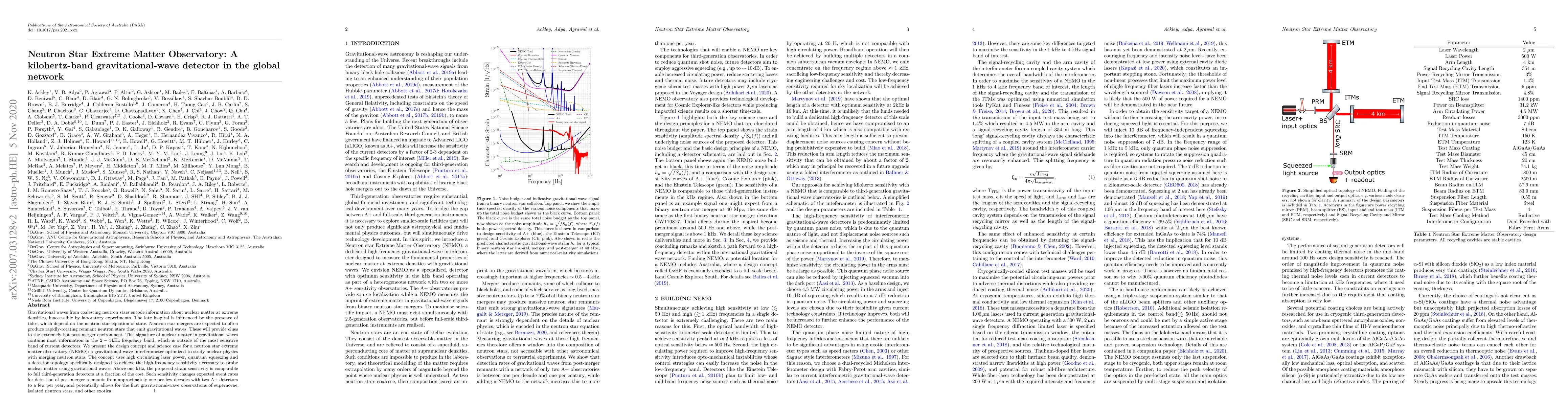 The Neutron Star Extreme Matter Observatory (NEMO) aims to detect kilohertz-band gravitational waves from neutron star mergers to study nuclear matter at extreme densities. With high-frequency sensitivity, NEMO could detect post-merger remnants and potentially observe supernovae, isolated neutron stars, and other exotic phenomena.