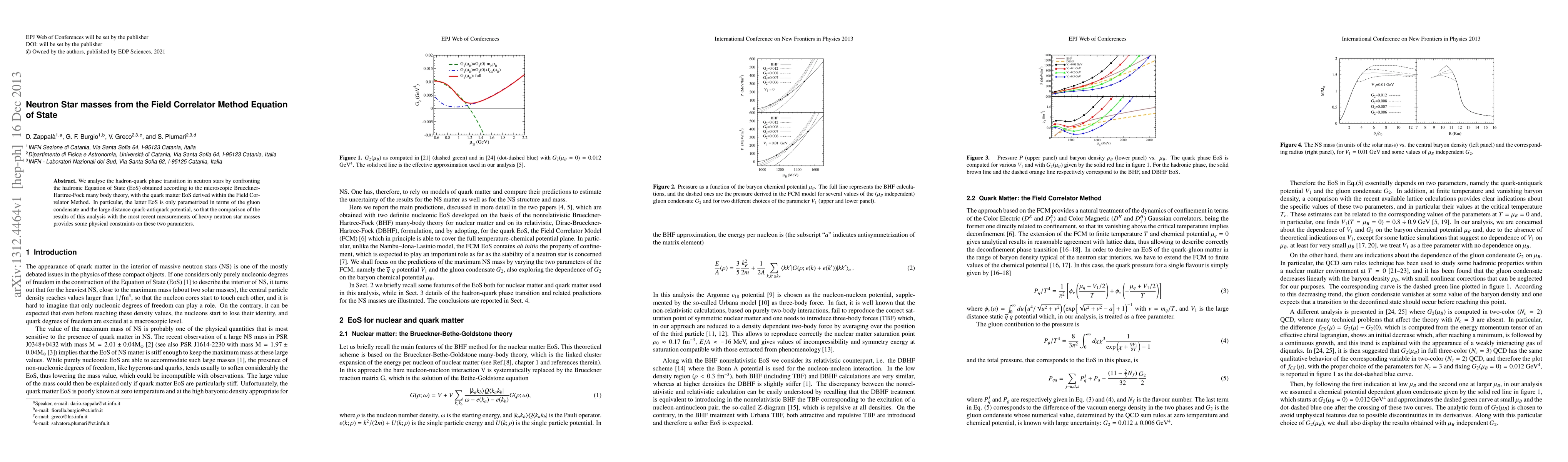 We analyse the hadron-quark phase transition in neutron stars by confronting the hadronic Equation of State (EoS) obtained according to the microscopic Brueckner-Hartree-Fock many body theory, with the quark matter EoS derived within the Field Correlator Method. In particular, the latter EoS is only parametrized in terms of the gluon condensate and the large distance quark-antiquark potential, so that the comparison of the results of this analysis with the most recent measurements of heavy neutron star masses provides some physical constraints on these two parameters.
