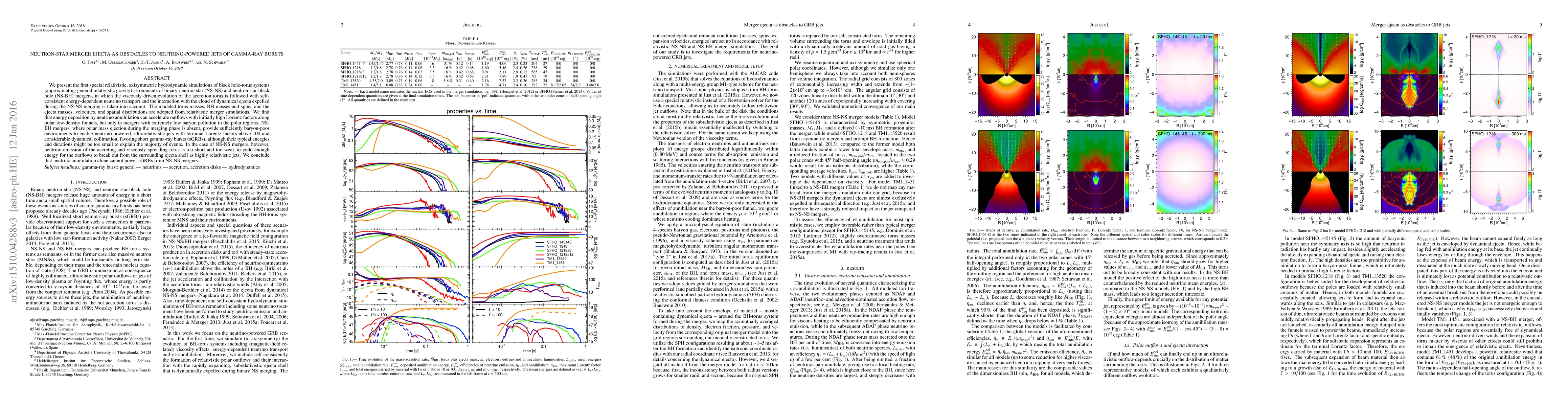 We present the first special relativistic, axisymmetric hydrodynamic simulations of black hole-torus systems (approximating general relativistic gravity) as remnants of binary-neutron star (NS-NS) and neutron star-black hole (NS-BH) mergers, in which the viscously driven evolution of the accretion torus is followed with self-consistent energy-dependent neutrino transport and the interaction with the cloud of dynamical ejecta expelled during the NS-NS merging is taken into account. The modeled torus masses, BH masses and spins, and the ejecta masses, velocities, and spatial distributions are adopted from relativistic merger simulations. We find that energy deposition by neutrino annihilation can accelerate outflows with initially high Lorentz factors along polar low-density funnels, but only in mergers with extremely low baryon pollution in the polar regions. NS-BH mergers, where polar mass ejection during the merging phase is absent, provide sufficiently baryon-poor environments to enable neutrino-powered, ultrarelativistic jets with terminal Lorentz factors above 100 and considerable dynamical collimation, favoring short gamma-ray bursts (sGRBs), although their typical energies and durations might be too small to explain the majority of events. In the case of NS-NS mergers, however, neutrino emission of the accreting and viscously spreading torus is too short and too weak to yield enough energy for the outflows to break out from the surrounding ejecta shell as highly relativistic jets. We conclude that neutrino annihilation alone cannot power sGRBs from NS-NS mergers.