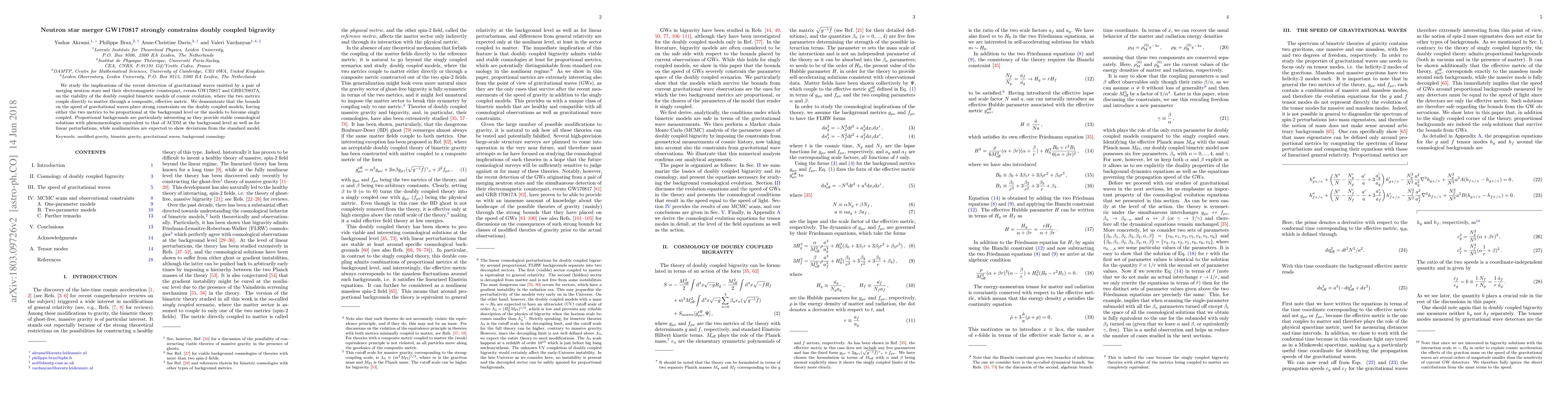 The detection of neutron star merger GW170817 constrains doubly coupled bigravity models to either have proportional background metrics or become singly coupled, with the former providing stable cosmological solutions.