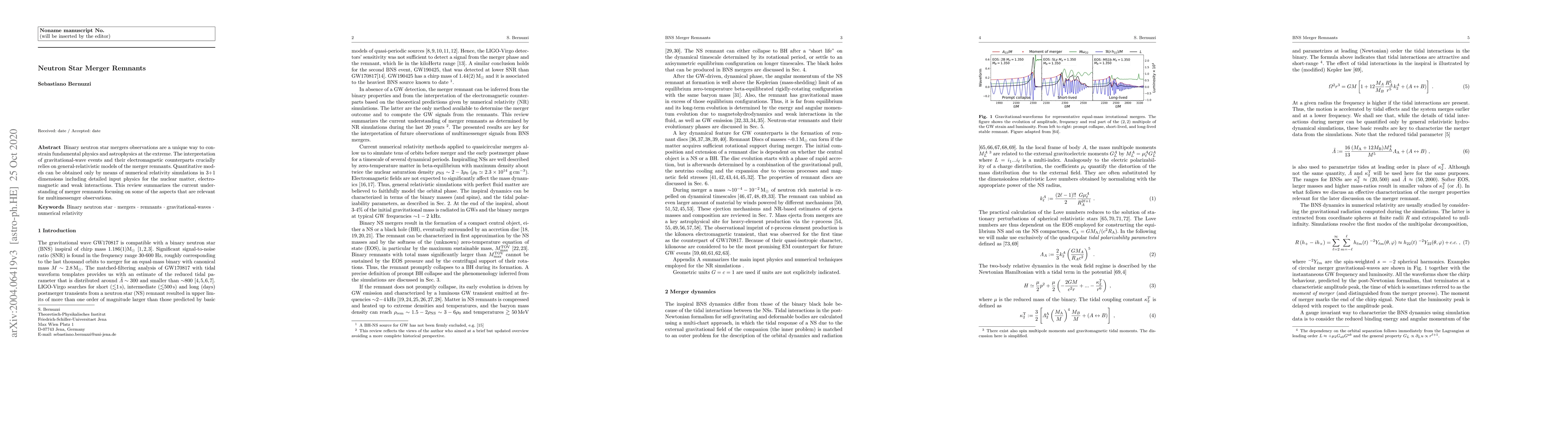 This paper reviews current models of neutron star merger remnants, emphasizing the importance of general-relativistic simulations and detailed input physics for interpreting gravitational-wave and electromagnetic observations. It highlights the role of numerical relativity in understanding these extreme astrophysical events.