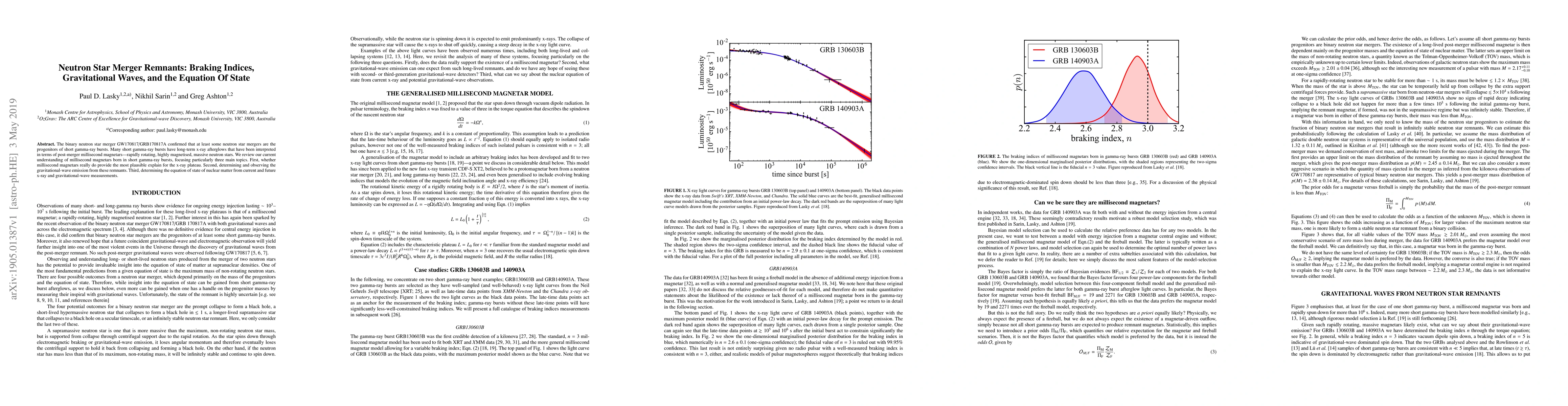 This paper reviews the role of millisecond magnetars in short gamma-ray bursts, focusing on their explanation for x-ray plateaus, gravitational-wave emissions from these remnants, and the potential to determine the equation of state of nuclear matter through x-ray and gravitational-wave observations.