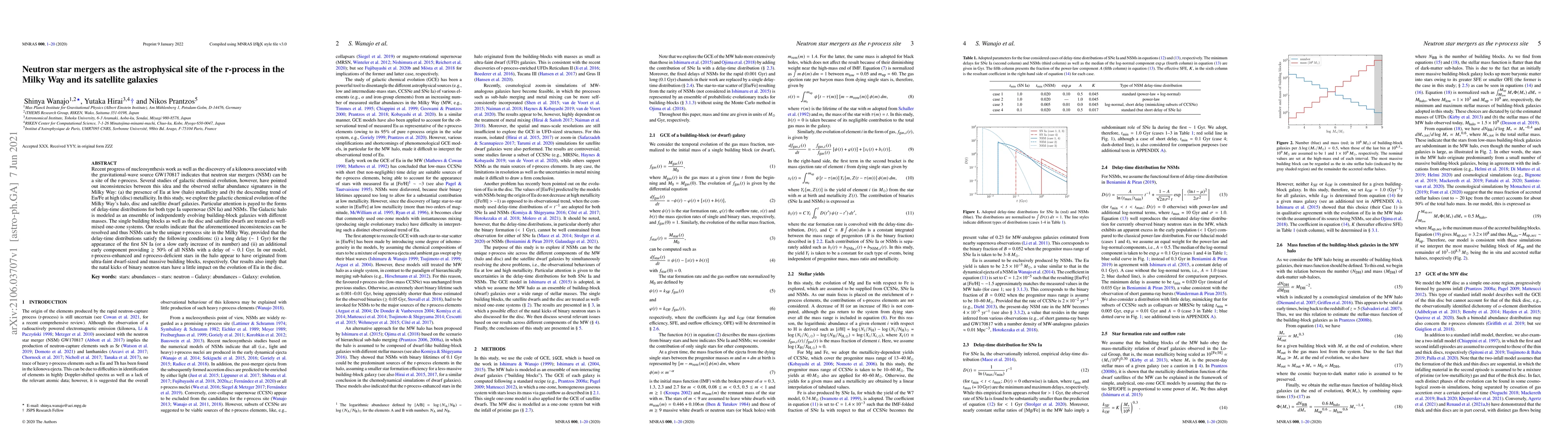 This study resolves inconsistencies between neutron star mergers (NSM) as the r-process site and observed stellar abundances in the Milky Way by proposing specific delay-time distributions for type Ia supernovae and NSMs, suggesting NSMs are the unique r-process source if the first SN Ia appears with a long delay and an early component of NSMs emerges quickly.