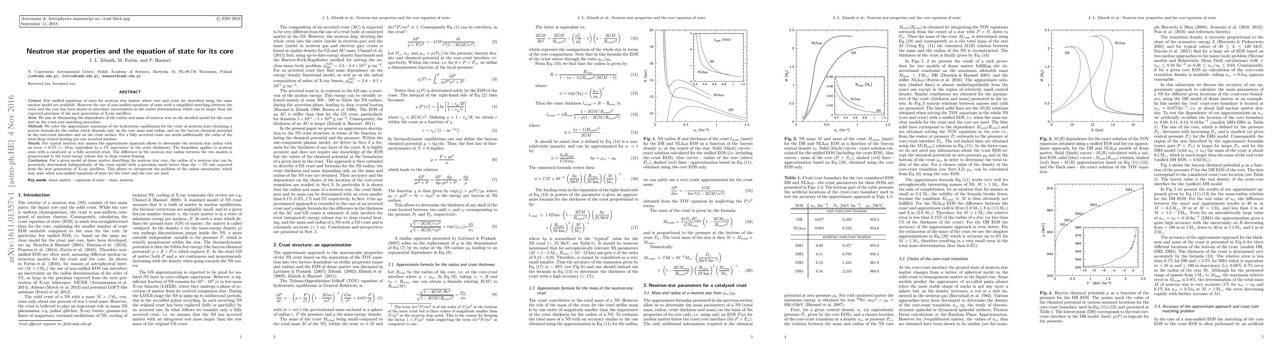 Few unified equations of state for neutron star matter where core and crust are described using the same nuclear model are available. However the use of non-unified equations of state with a simplified matching between the crust and the core has been shown to introduce uncertainties in the radius determination which can be larger than the expected precision of the next generation of X-ray satellites. We aim at eliminating the dependence of the radius and mass of neutron staron the detailed model for the crust and on the crust-core matching procedure. We solve the approximate equations of the hydrostatic equilibrium for the crust of neutron stars obtaining a precise formula for the radius which depends only on the core mass and radius, and on the baryon chemical potential at the core-crust interface and on the crust surface. For a fully accreted crust one needs additionally the value of the total deep crustal heating per one accreted nucleon. For typical neutron star masses the approximate approach allows to determine the neutron star radius with an error ~0.1% (~ 10 m, equivalent to a 1% inaccuracy in the crust thickness). The formalism applies to neutron stars with a catalyzed or a fully accreted crust. The difference in the neutron star radius between the two models is proportional to the total energy release due to deep crustal heating. For a given model of dense matter describing the neutron star core, the radius of a neutron star can be accurately determined independently of the crust model with a precision much better than the ~5% one expected from the next generation of X-ray satellites. This allows to circumvent the problem of the radius uncertainty which may arise when non-unified equations of state for the crust and the core are used.